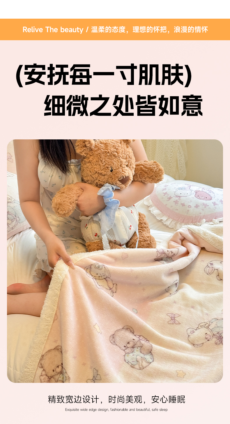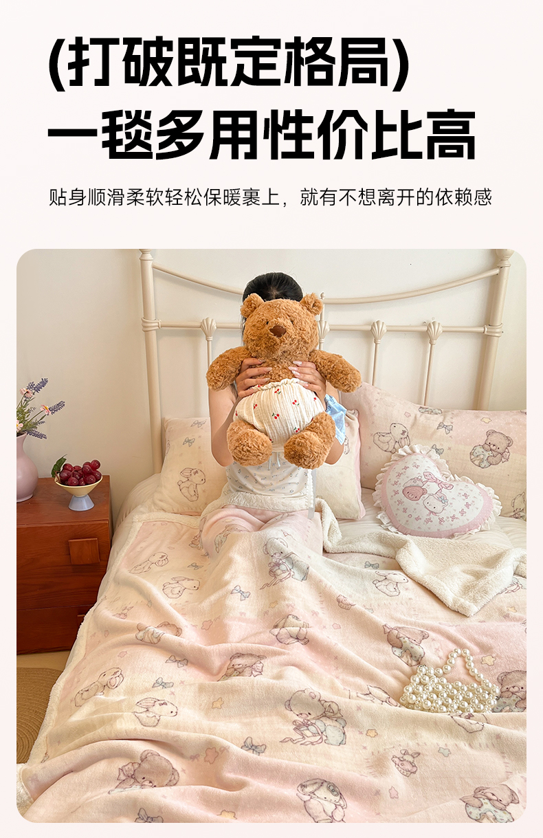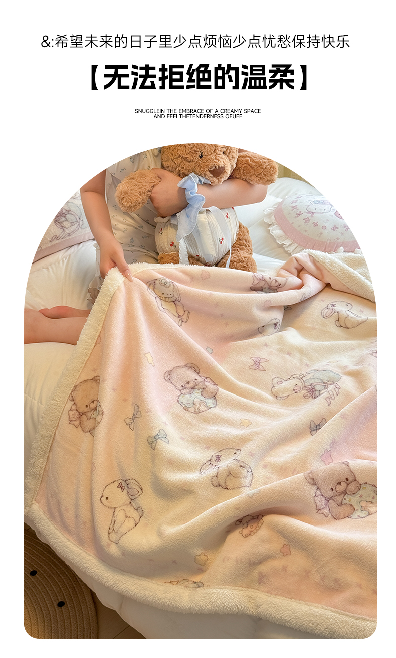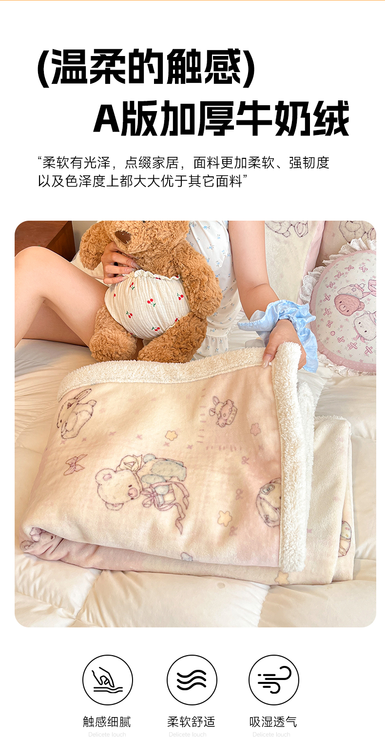 商品名称:红嘴企鹅 2025新款A类ins风卡通可爱加厚牛奶绒羊羔绒毛毯毯子办公室沙发儿童空调盖毯午休毯 梦幻小熊