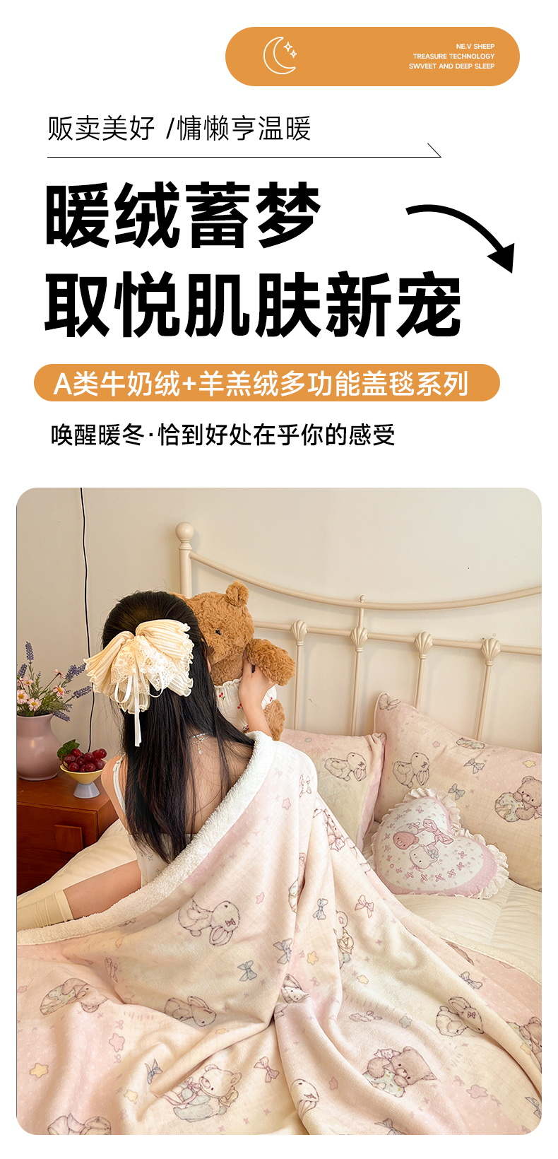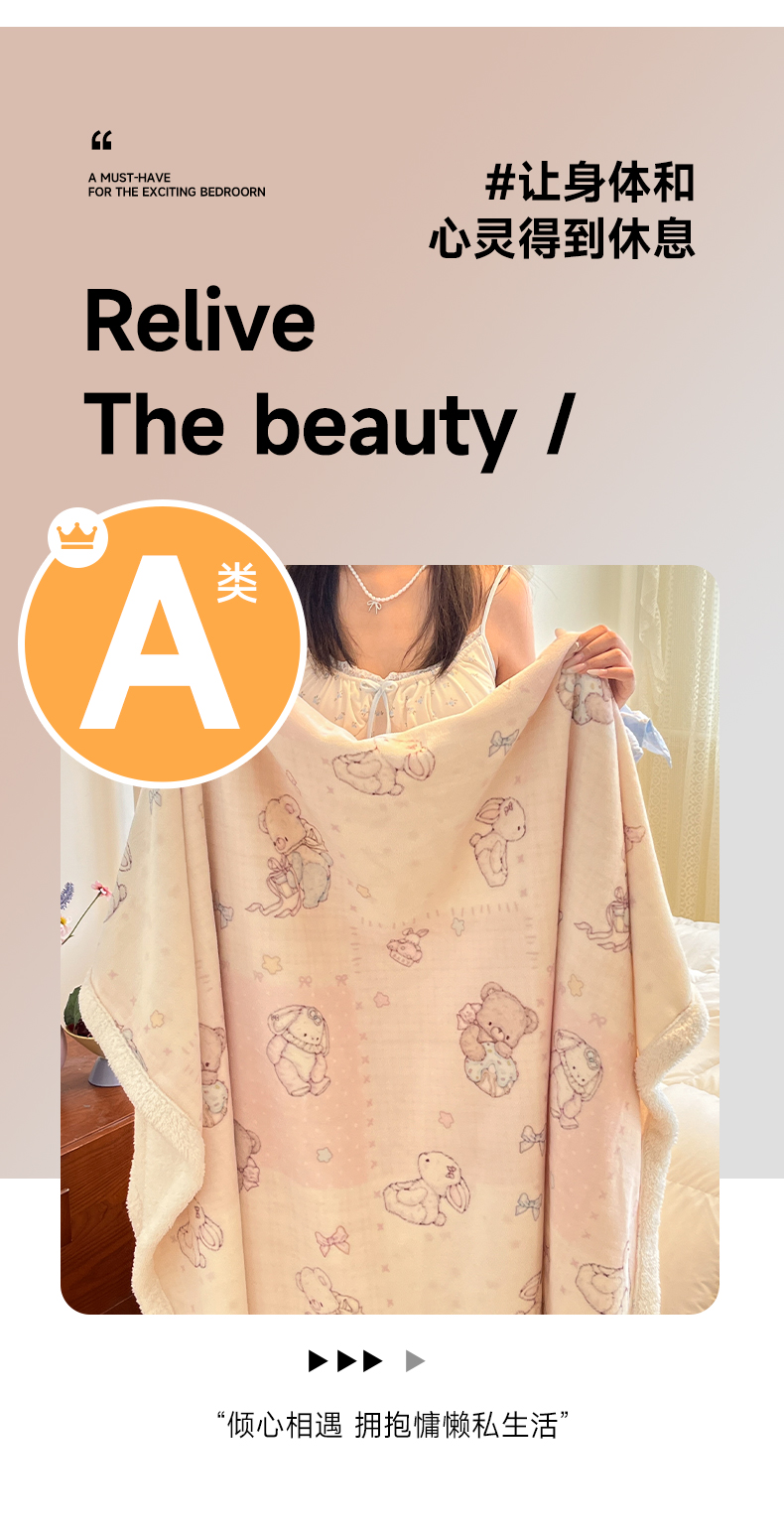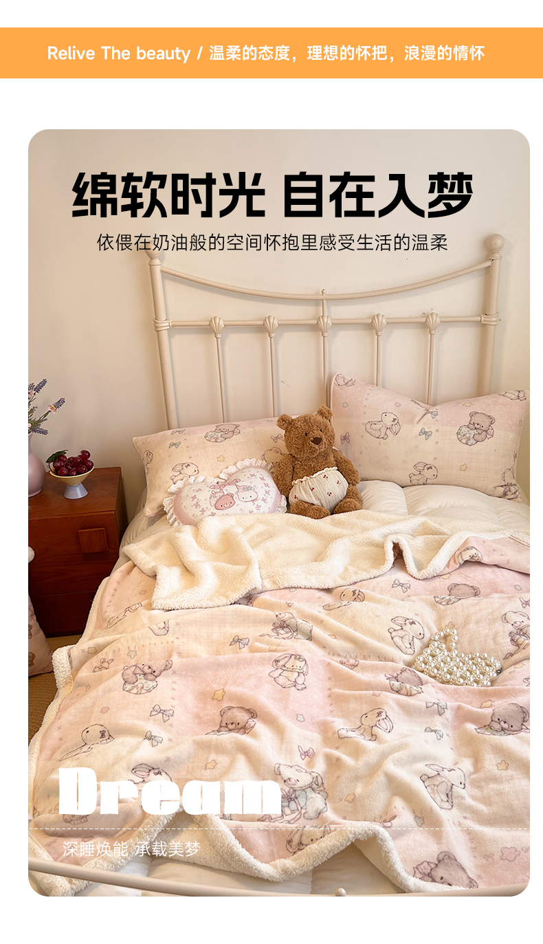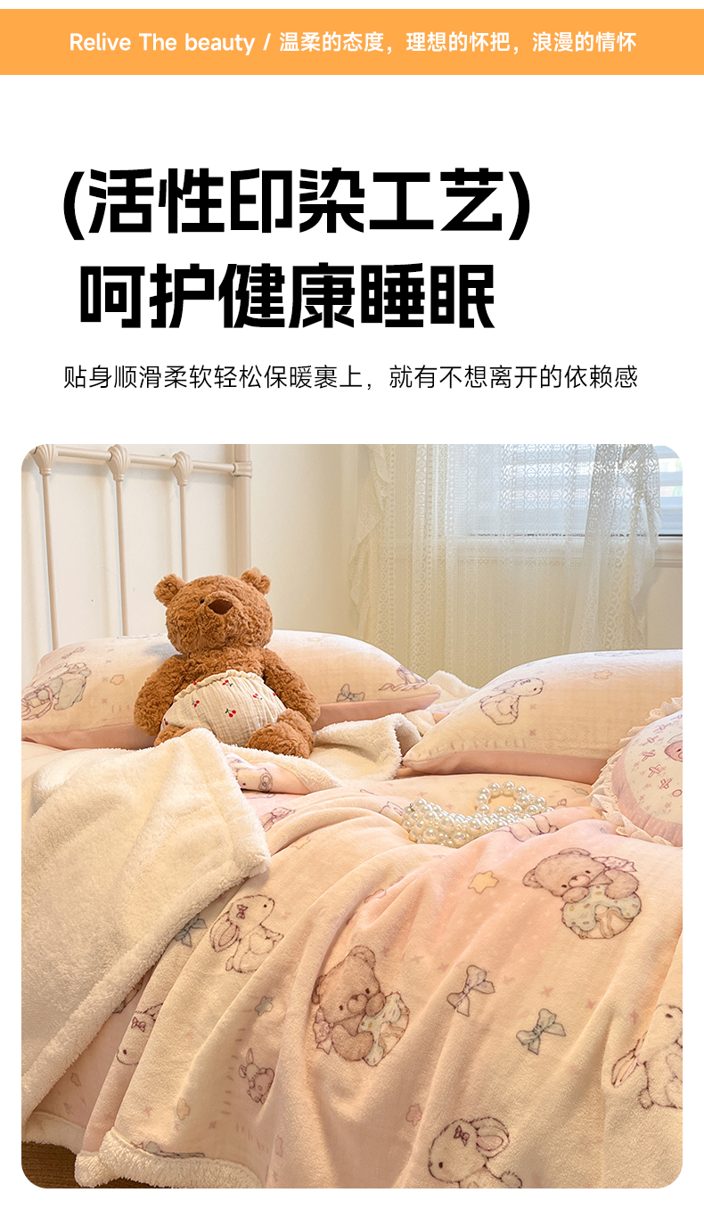 商品名称:红嘴企鹅 2025新款A类ins风卡通可爱加厚牛奶绒羊羔绒毛毯毯子办公室沙发儿童空调盖毯午休毯 梦幻小熊