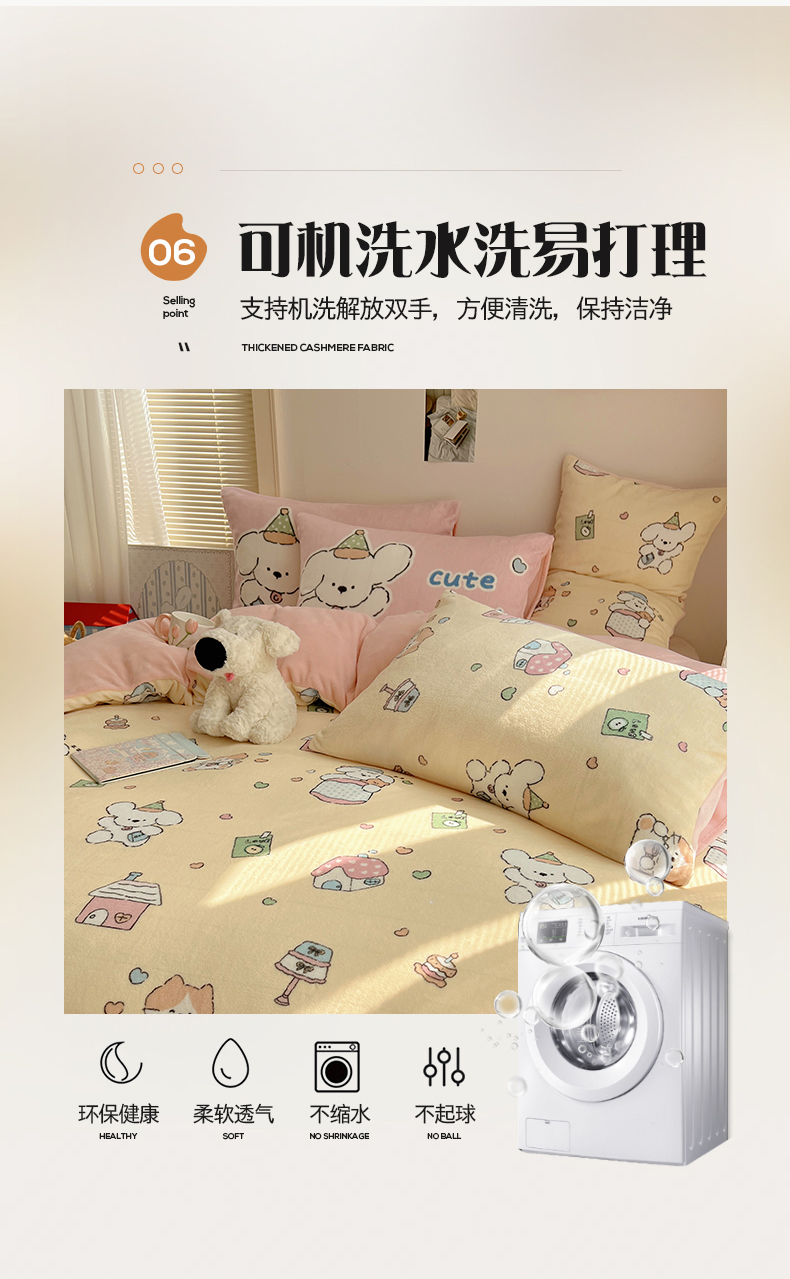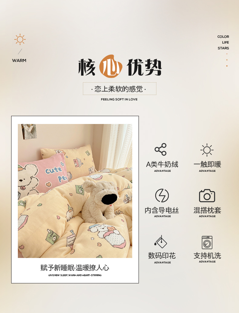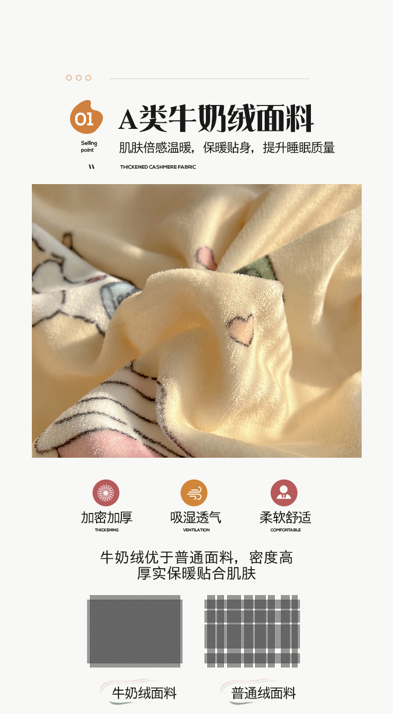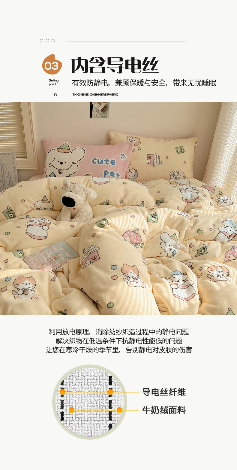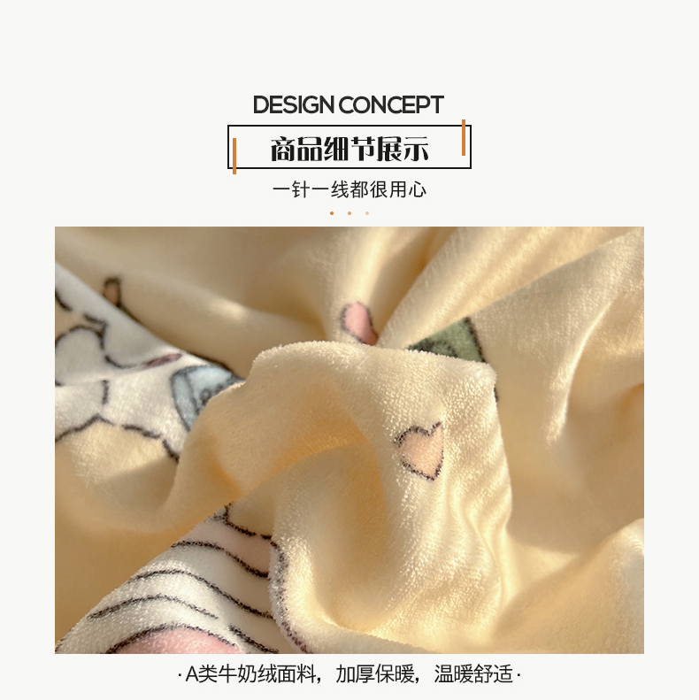 商品名称:桃子家居 2025新款A类ins数码印花枕混搭小清新少女卡通猫咪加厚牛奶系列四件套 绒-混搭奶黄日记