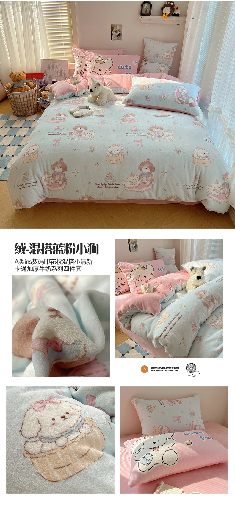 (总)桃子家居 2026新款A类数码印花混搭冬季新年限定猫咪小马加厚牛奶绒四件套,绒-粉色费尔岛小狗,绒-梦幻小马粉,绒-梦幻小马蓝红,绒-樱桃猫猫红,绒-樱桃猫猫咖,绒-棕糖木马