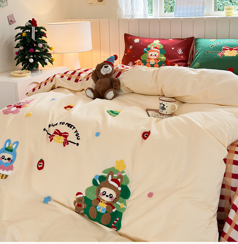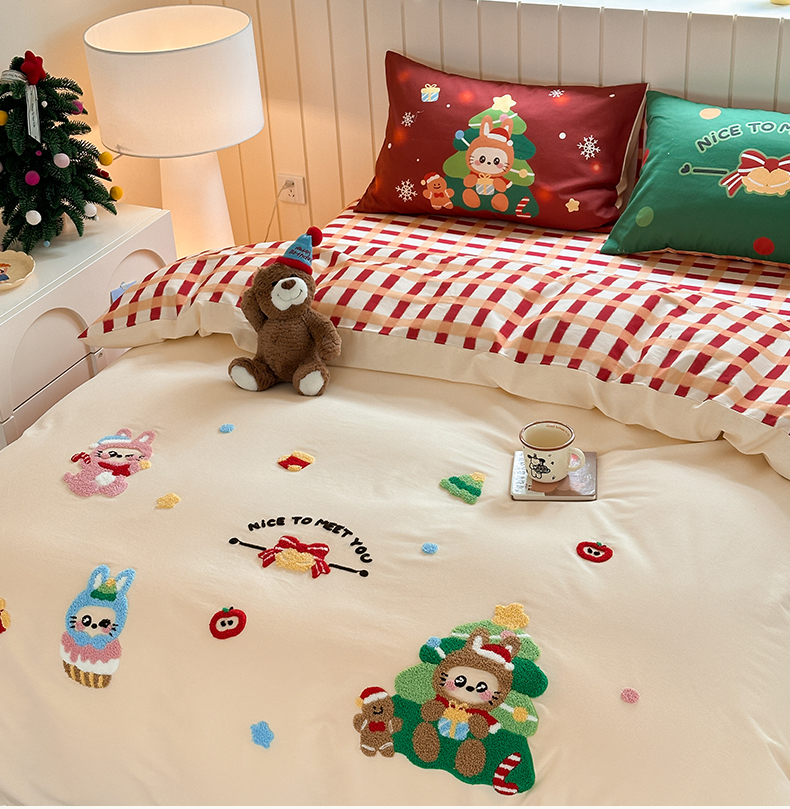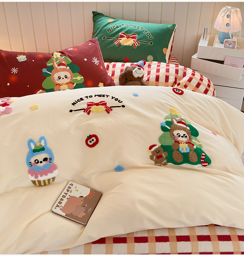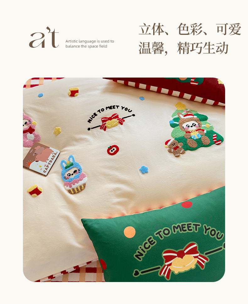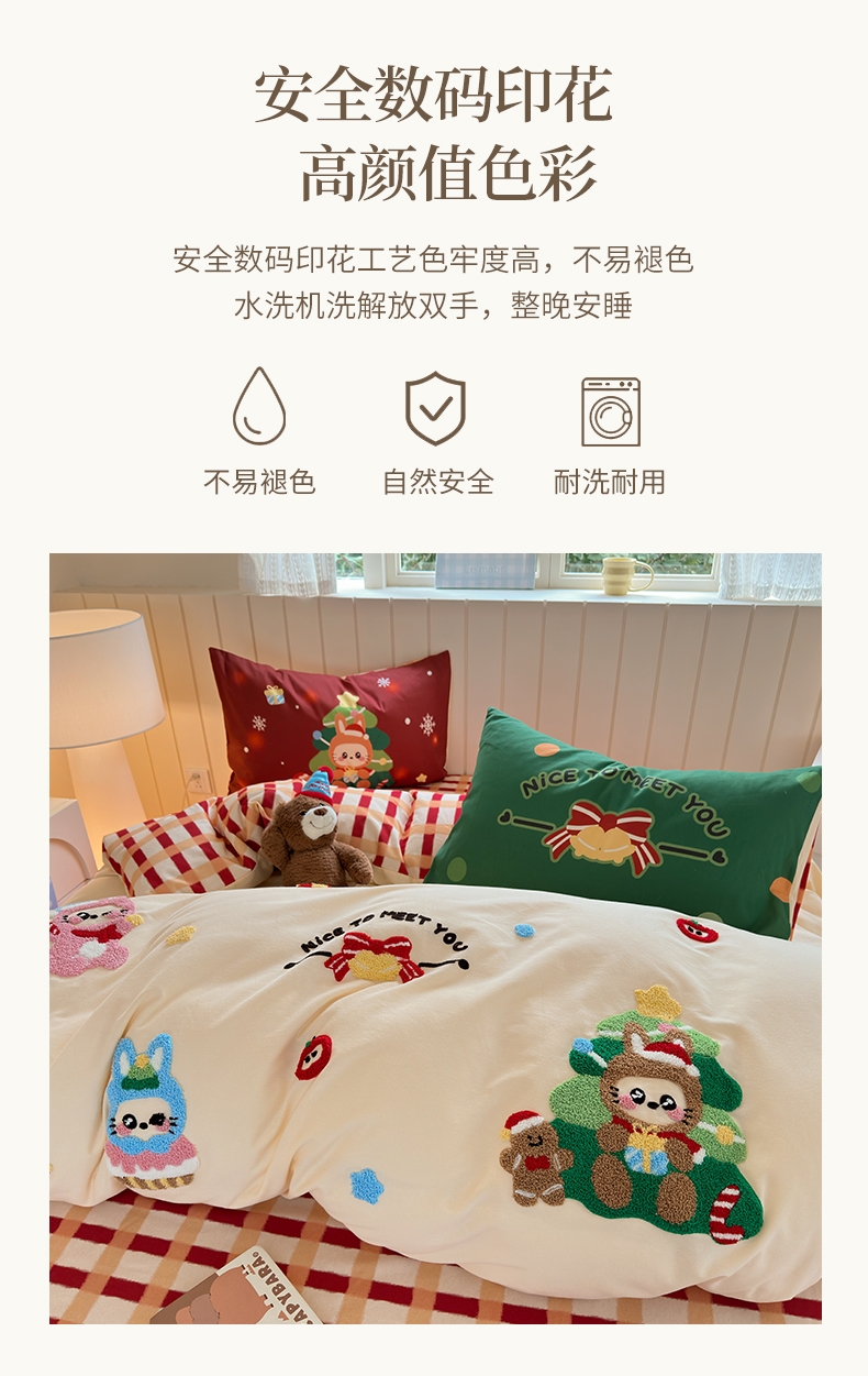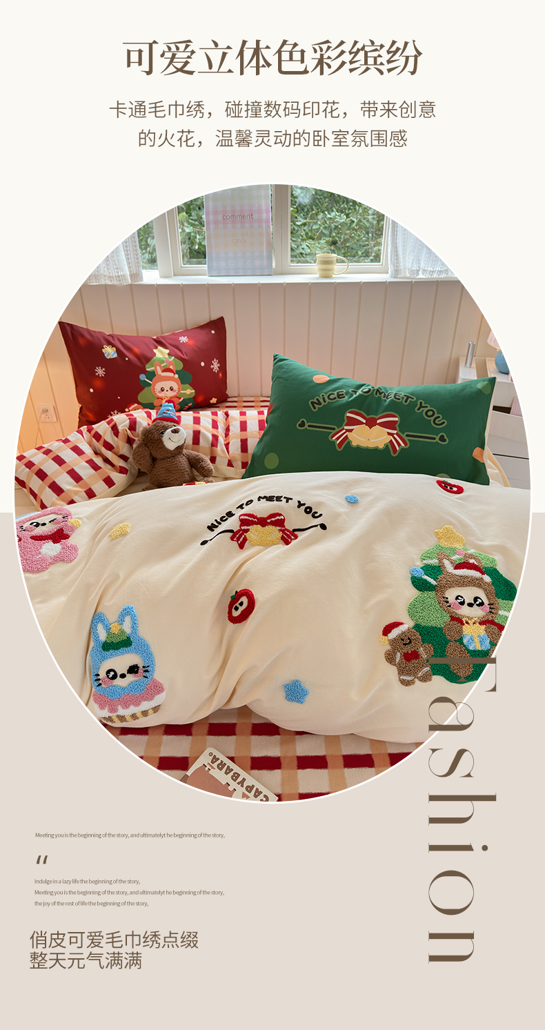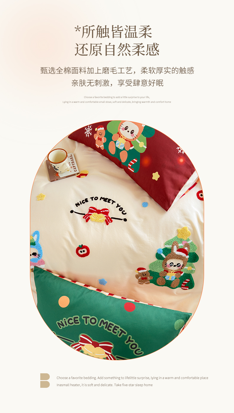 当前位置: 91家纺网 > 商品网购 > 床品套件 > 四件套 > 全棉普通四件套 > 小叮当家纺仓储工厂店 2025新款数码印花全棉纯棉磨毛毛巾绣四件套 圣诞派对
