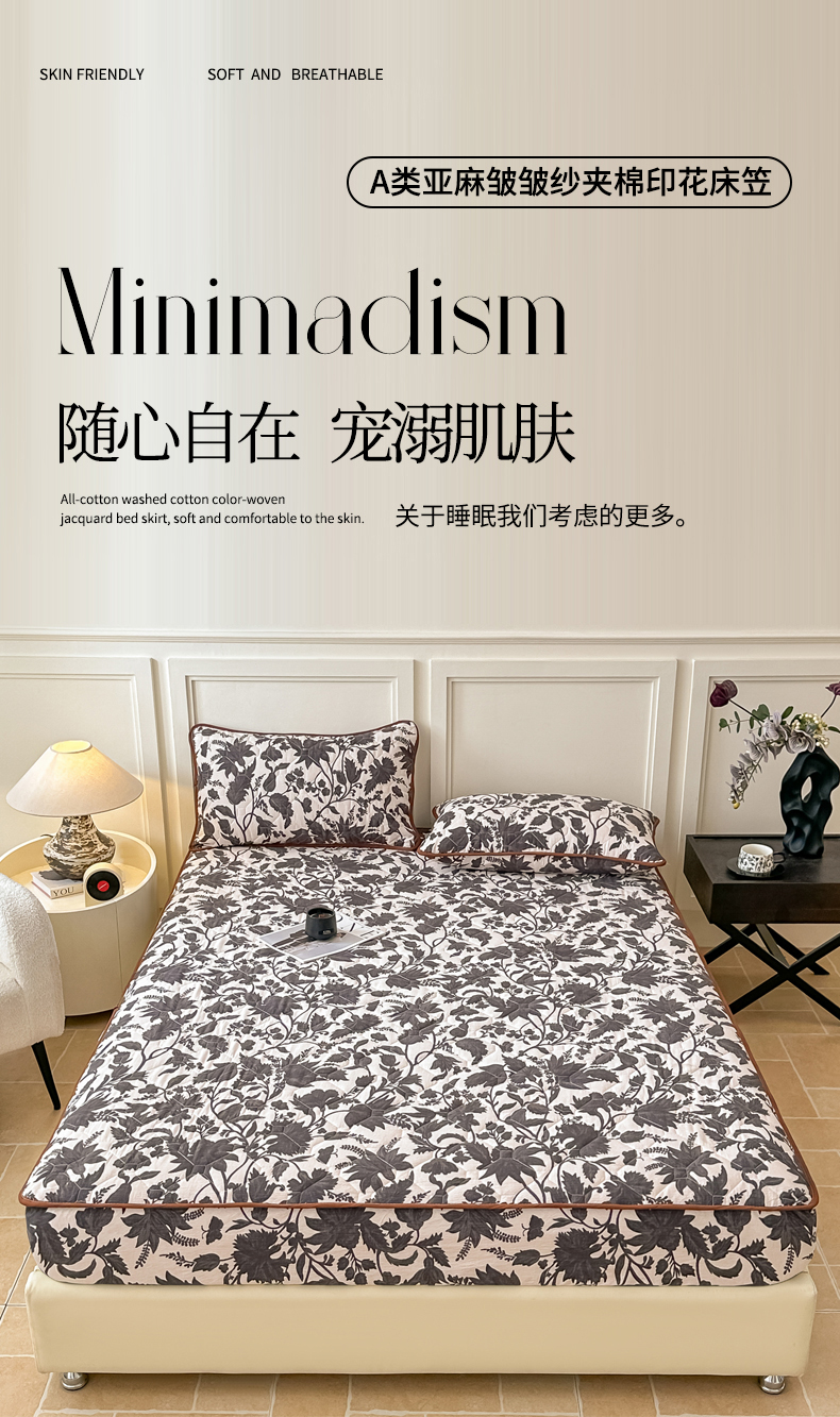 (总)梦嘉居 2025新款加厚亚麻皱皱纱床笠单床笠枕套床笠单品,蝶恋花,繁花梦,风铃草,扶桑花,花香韵,花之语,兰亭序,水云间,云水谣