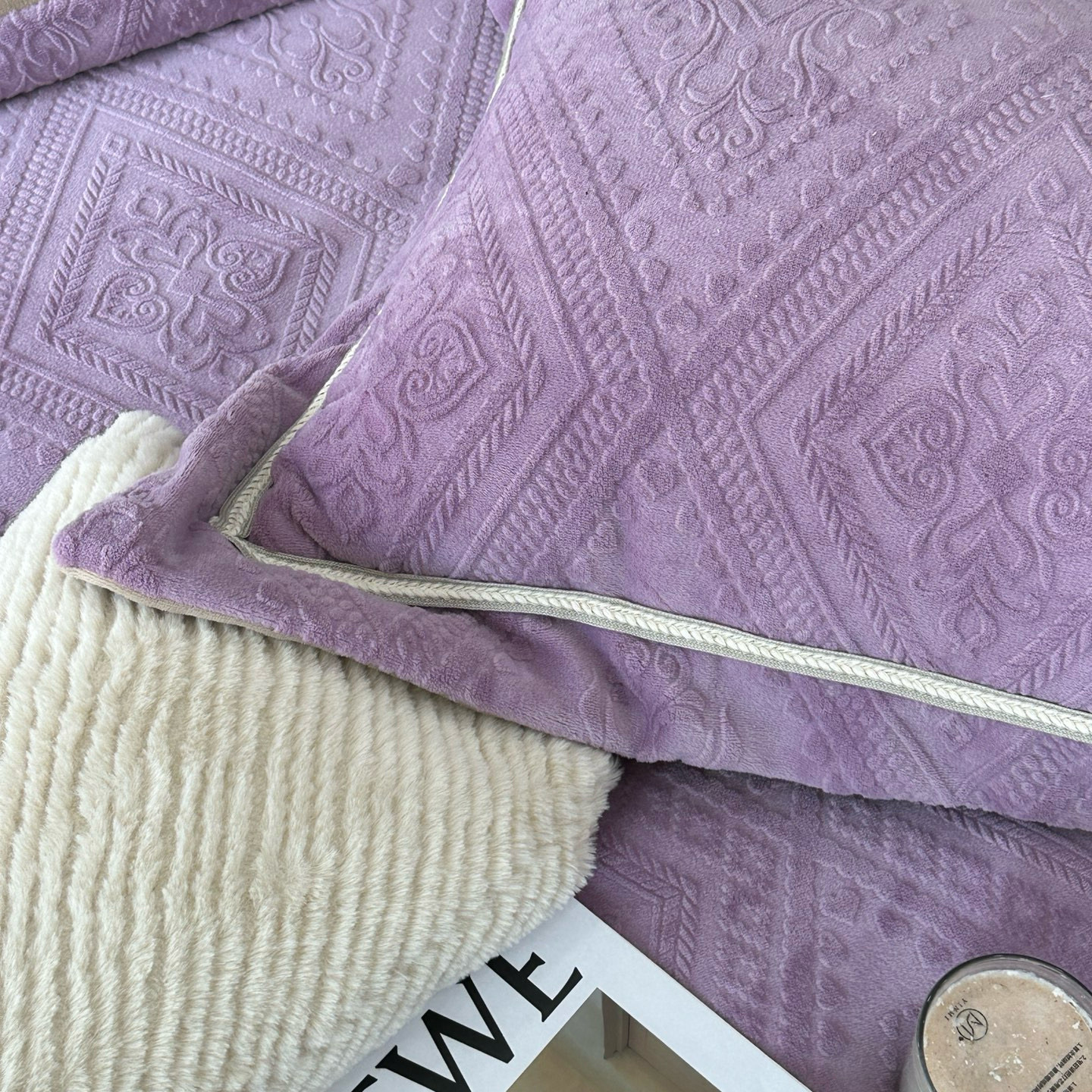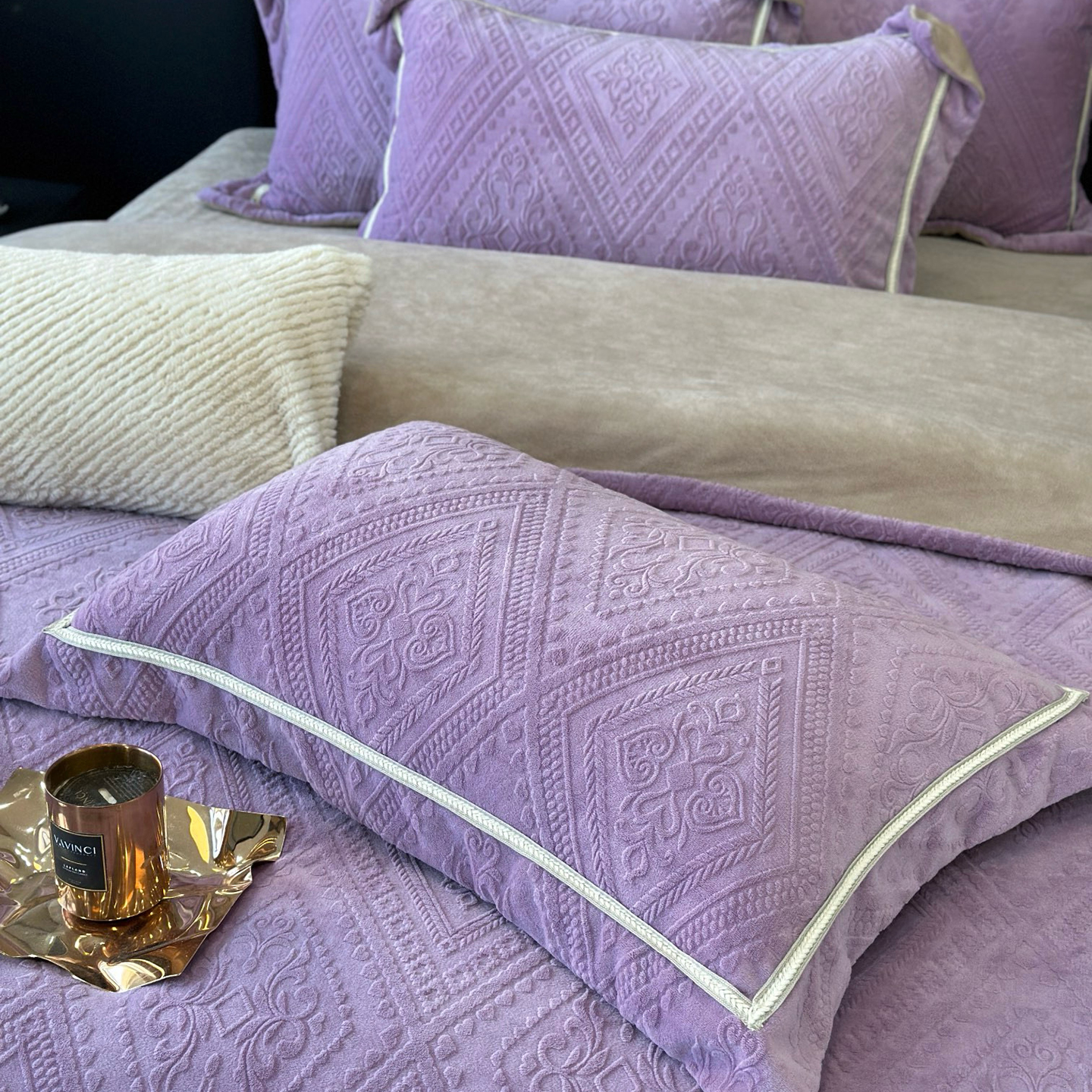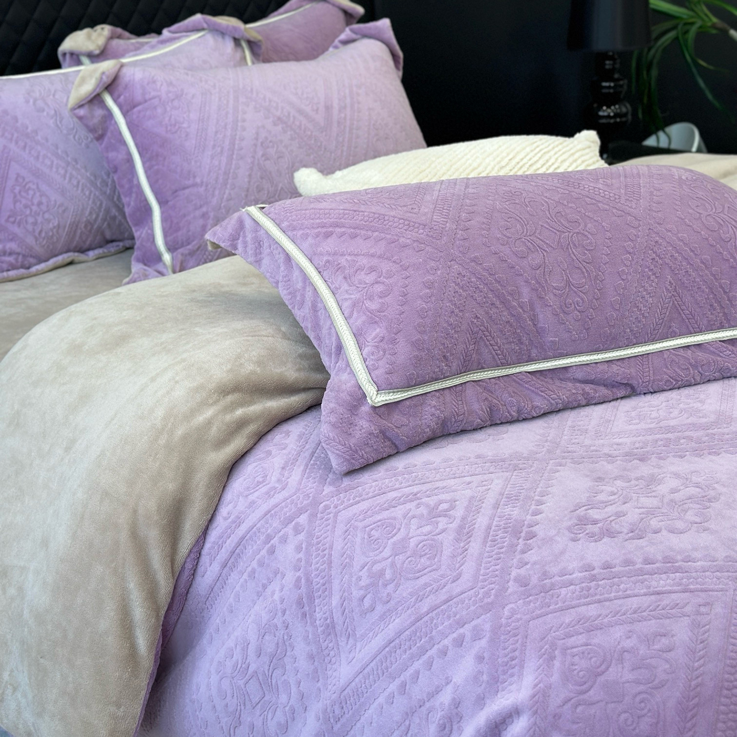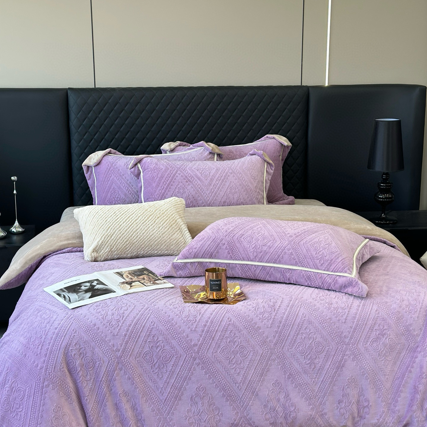纯优家纺 2025新款秋冬抖音直播爆款230g牛奶绒雕花四件套-悦薇 悦薇-紫色