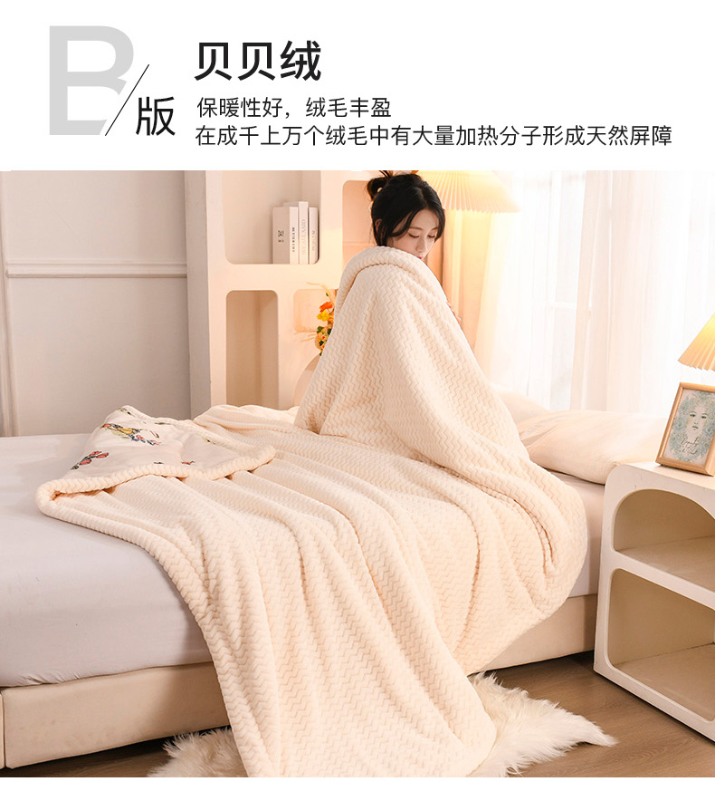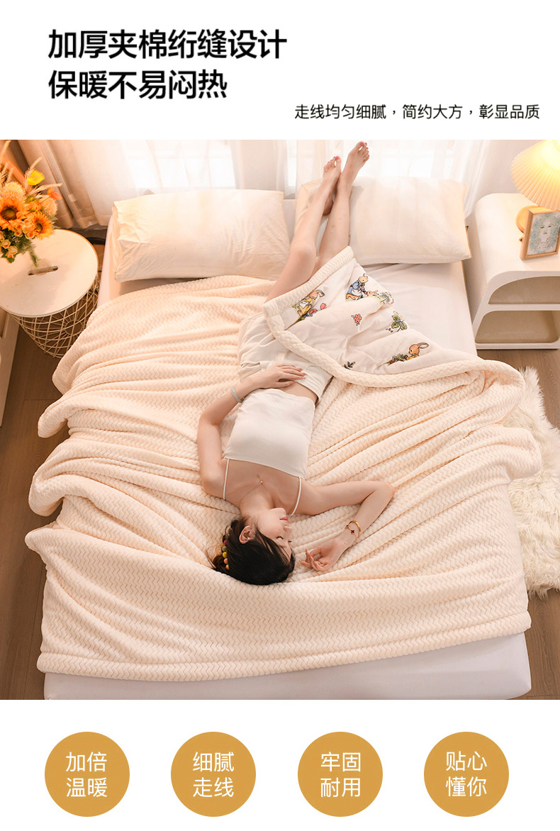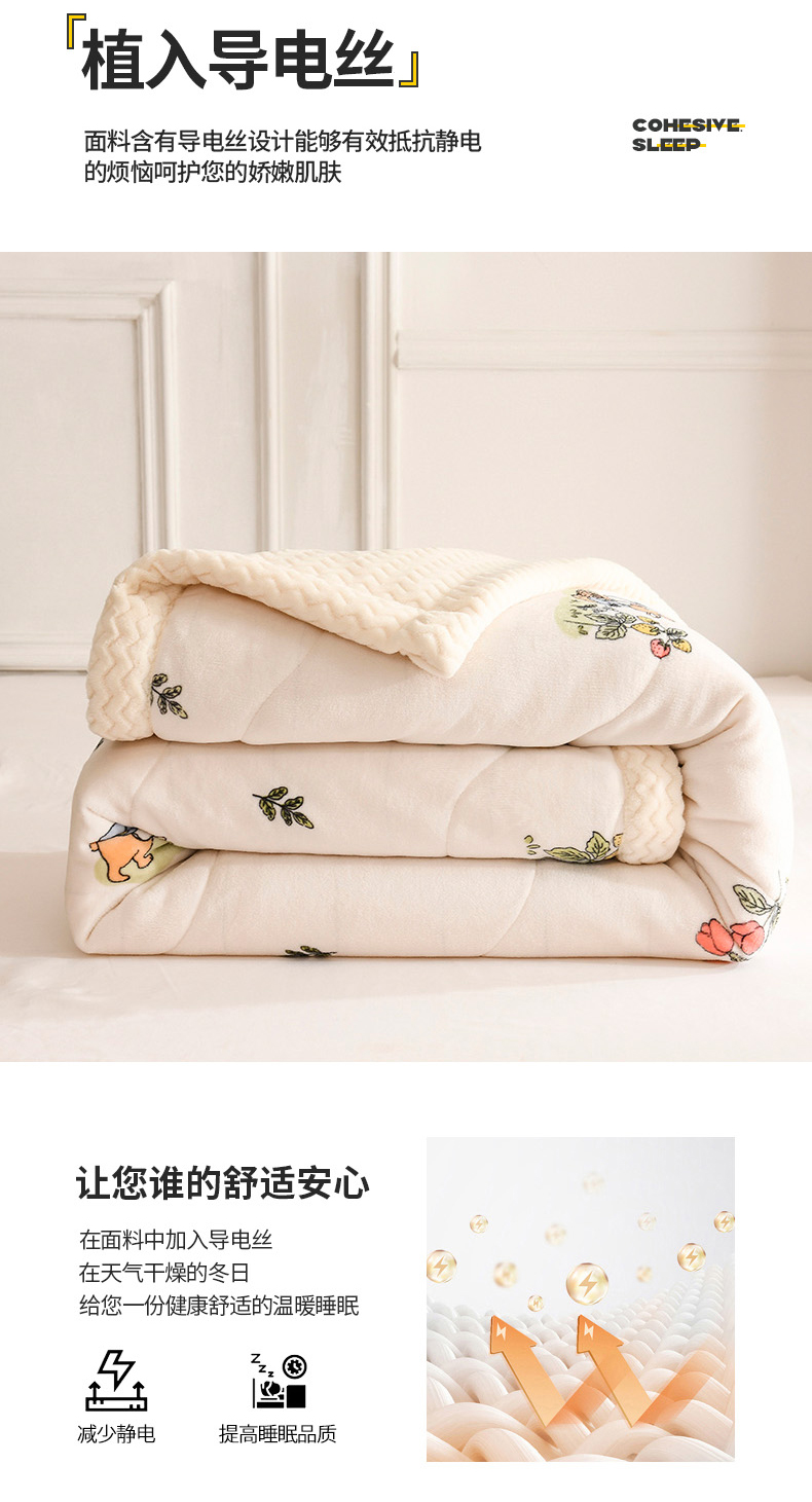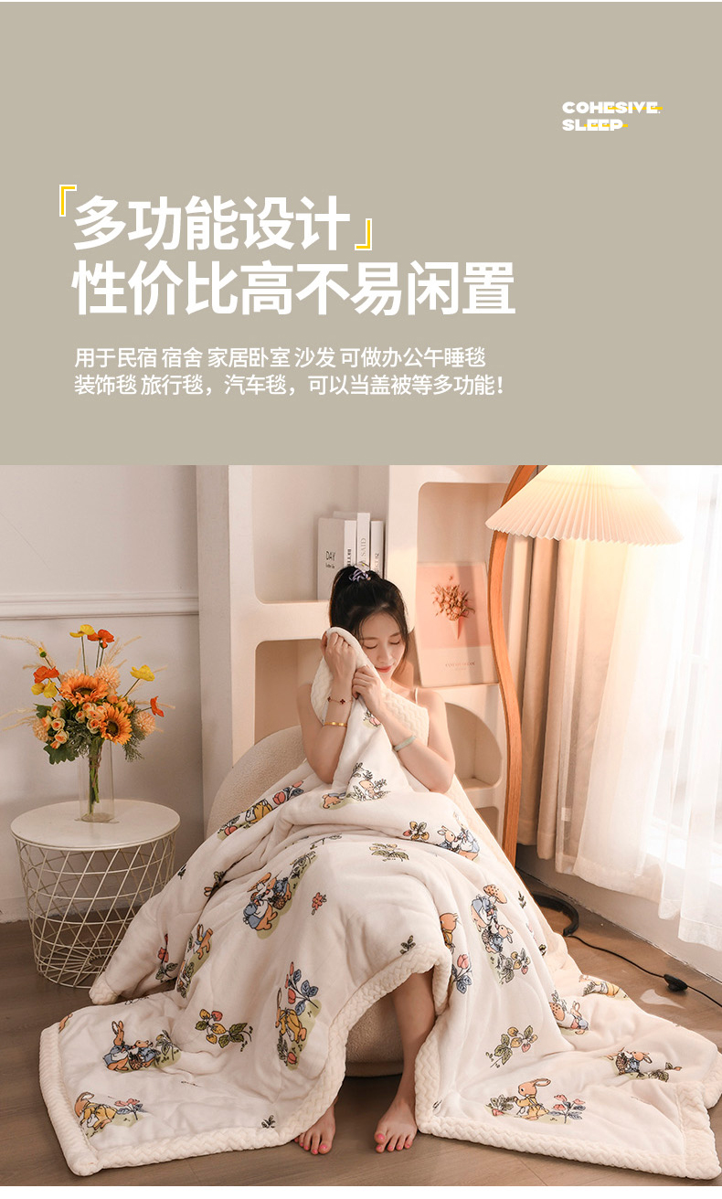 商品名称:印季家纺 2025新款三层夹棉印花牛奶绒毛毯毯子 花丛兔