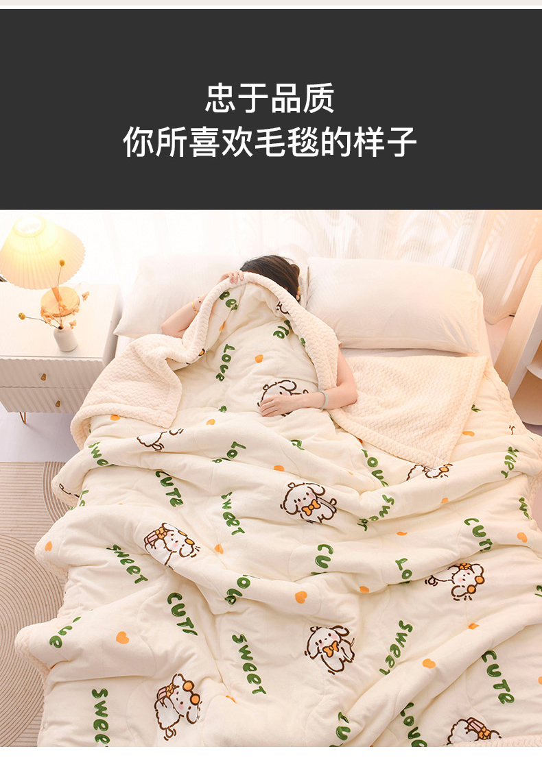 商品名称:印季家纺 2025新款三层夹棉印花牛奶绒毛毯毯子 幸运狗