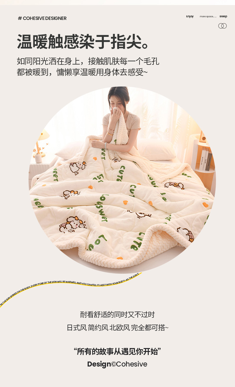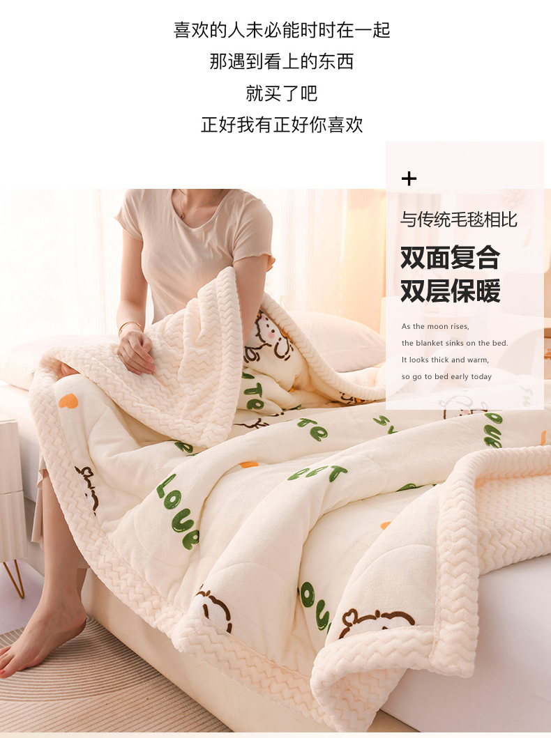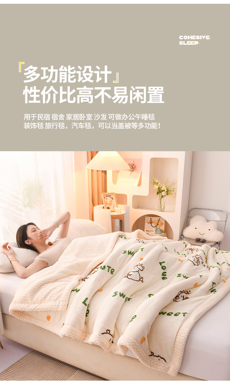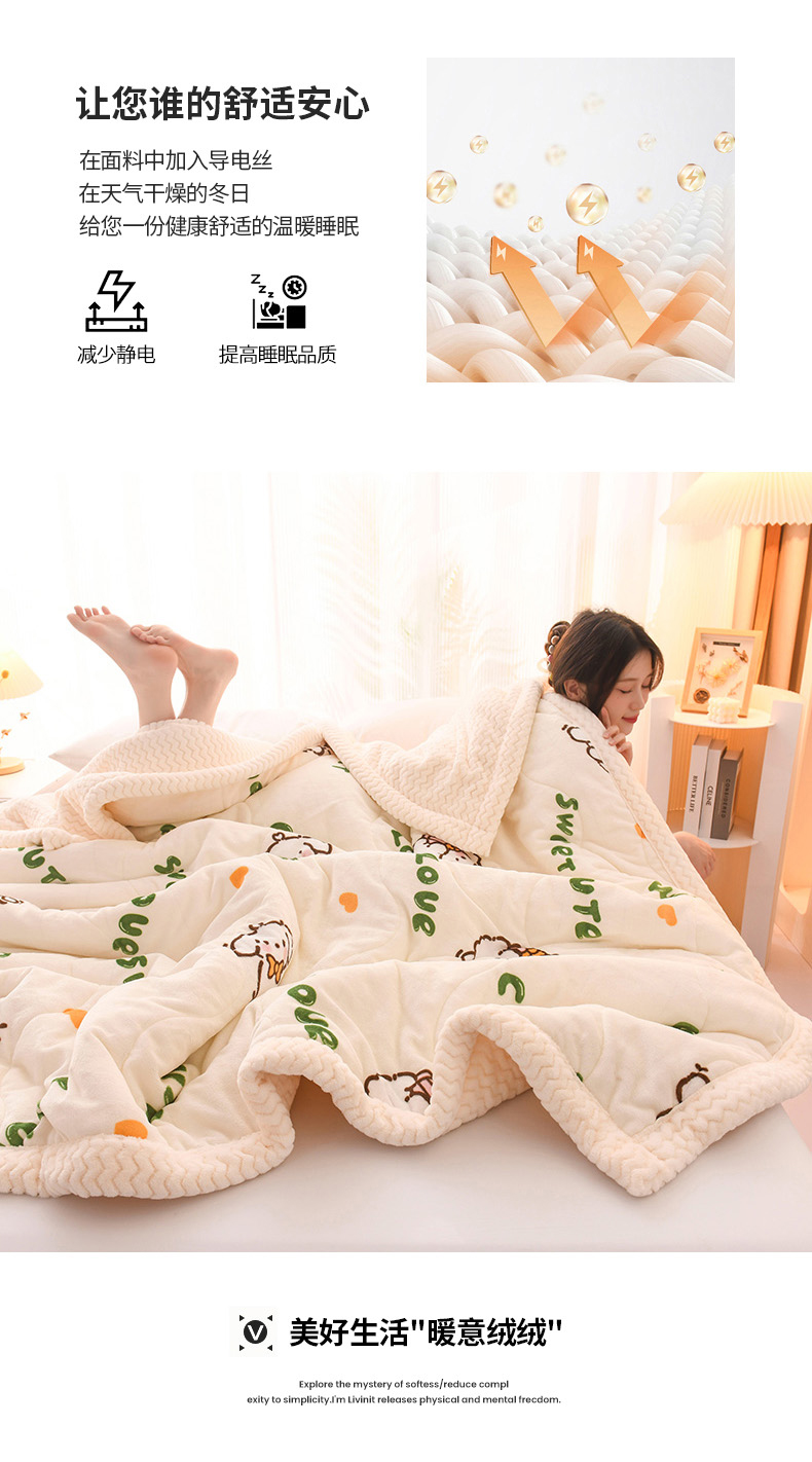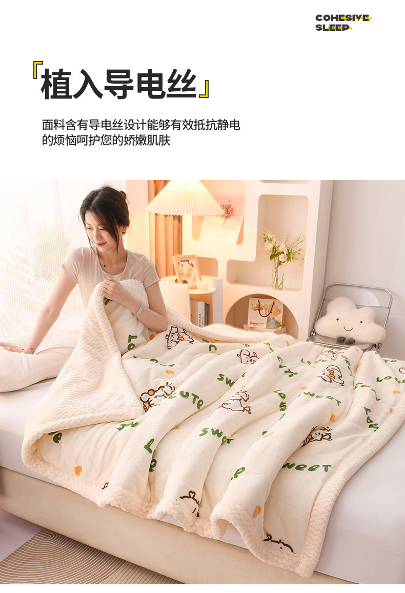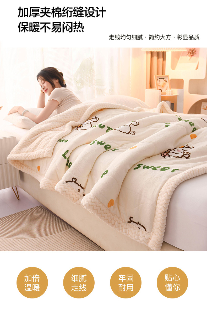 印季家纺 2025新款三层夹棉印花牛奶绒毛毯毯子 幸运狗