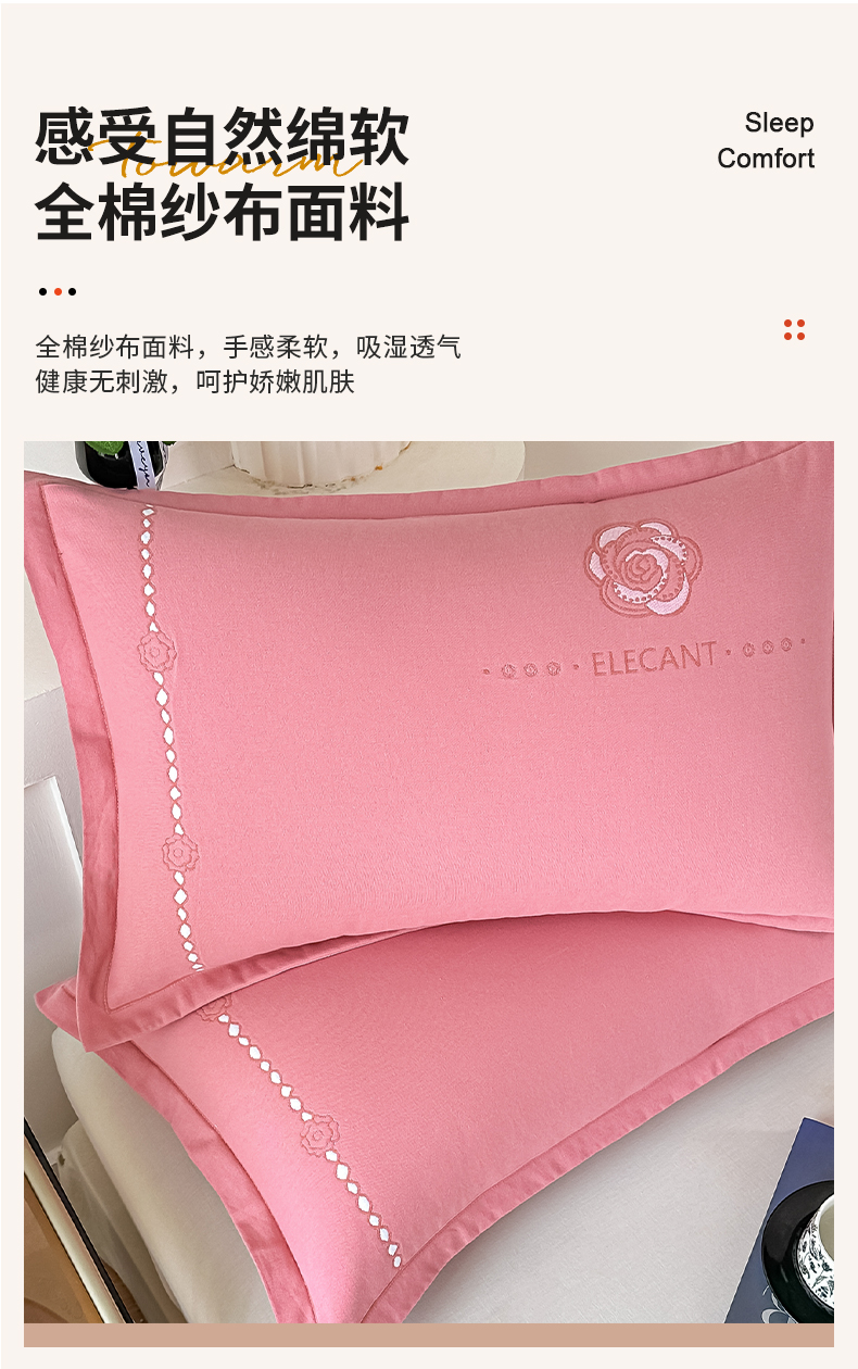 商品名称:沐瑟家纺 2025新款怡家枕套单品枕套枕套单件 花典-红豆沙