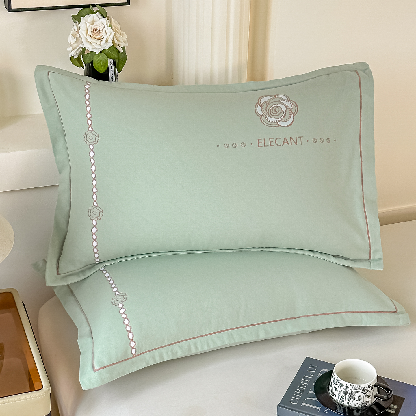 沐瑟家纺 2025新款怡家枕套单品枕套枕套单件 云点-草绿色