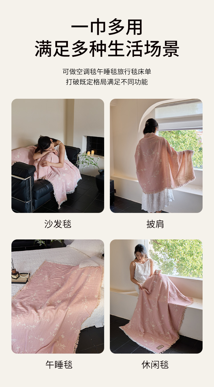 (总)沐瑟家纺 2025新款简约风多功能纱布盖毯纱布毯子毛巾被床盖沙发巾单毯枕巾枕套三件套,H本色,H橙色,H咖色,大马士革本色