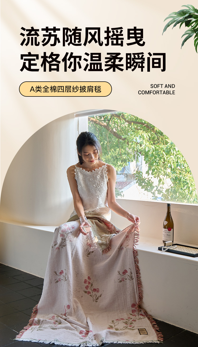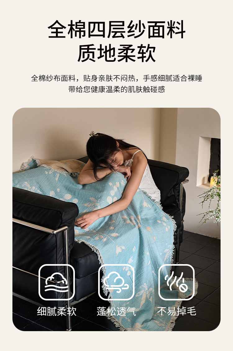 (总)沐瑟家纺 2025新款亲肤柔软全棉纱布中国风盖毯毯子,百花集,翠影鸟-蓝色,花想容,花鸟韵,蝶语-绿,蝶语-淡粉,花蝶-米,比翼鸟,墨葵,绮梦花