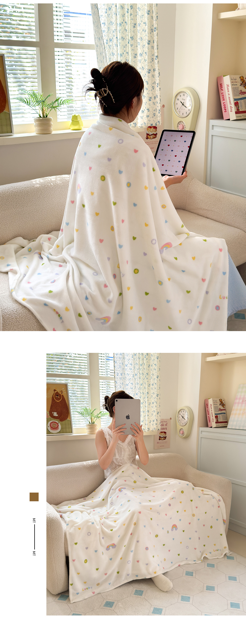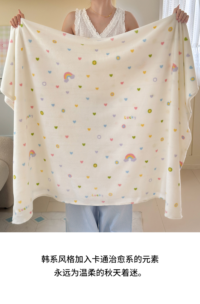 沐芷 2025 A类牛奶绒毛毯印花盖毯毛毯午休毯卡通多功能沙发毯空调毯 提供买家秀(下载文件包,包含买家秀) 【绒】彩虹爱心