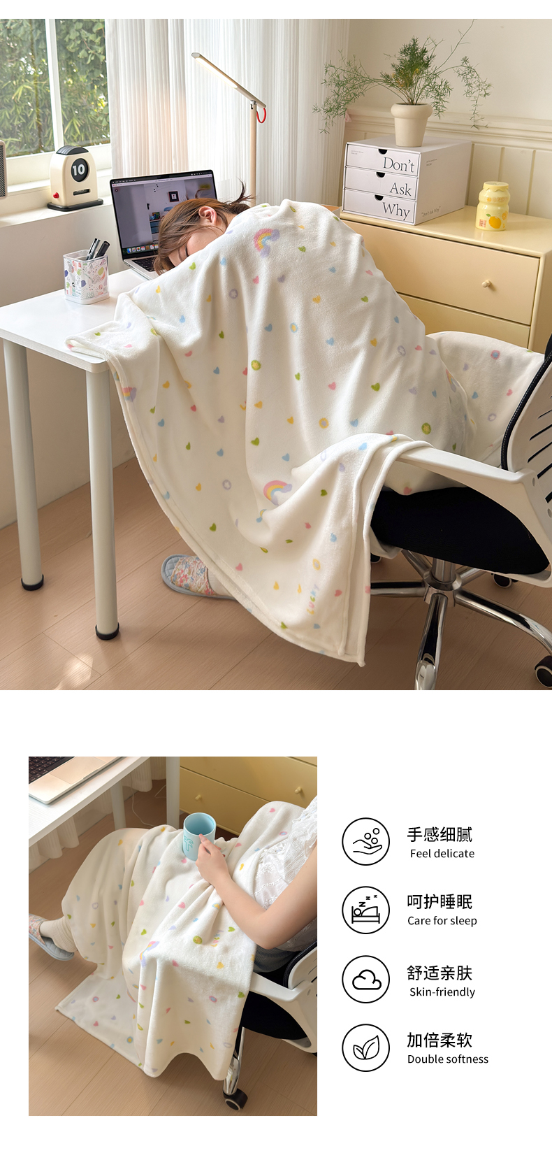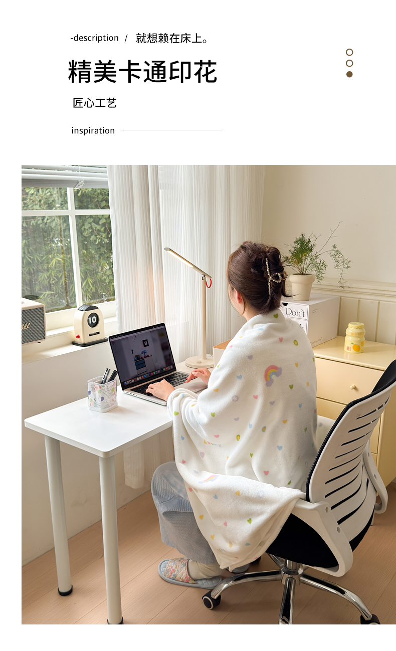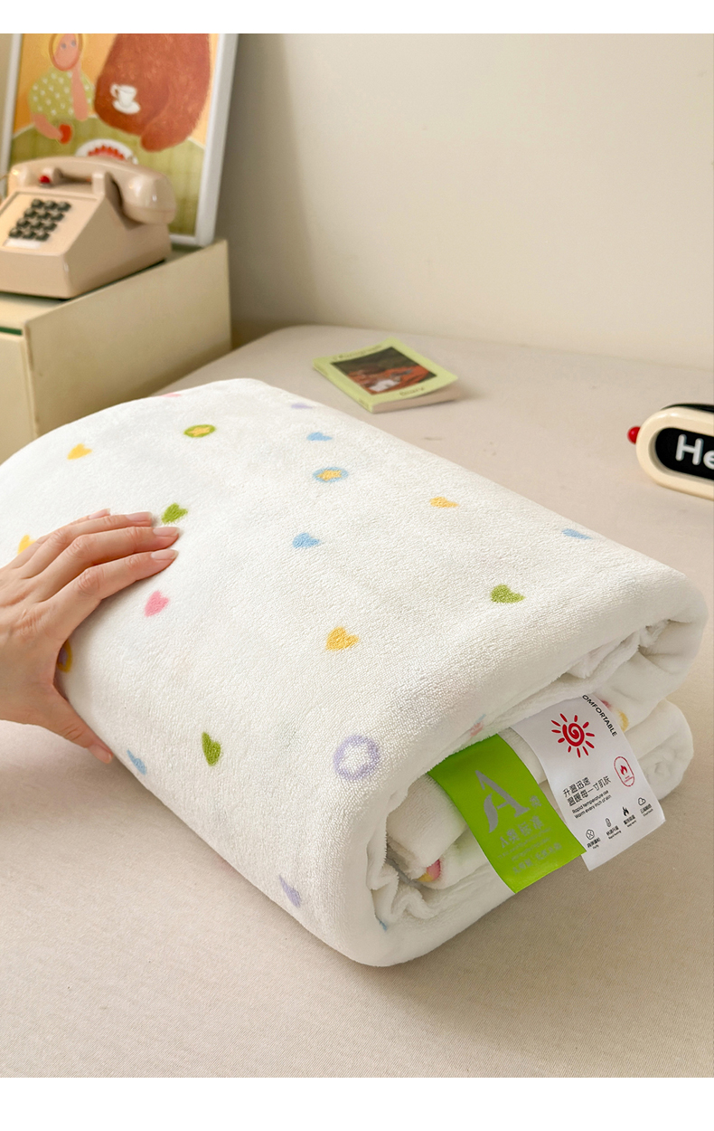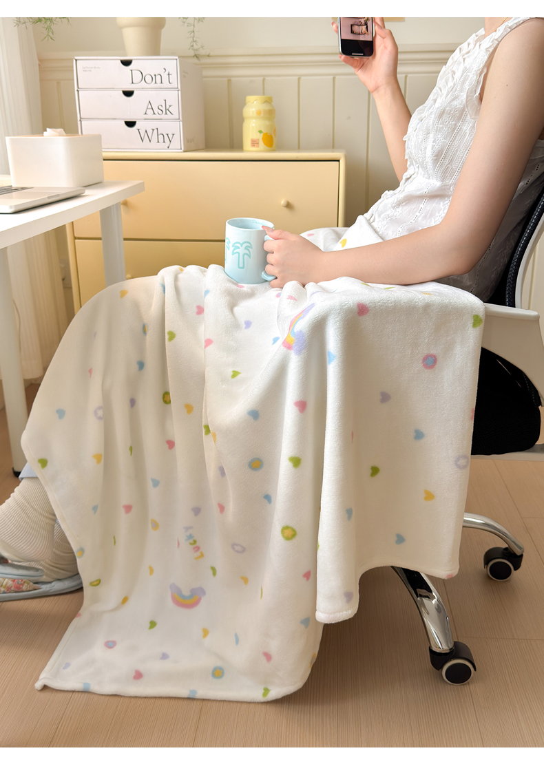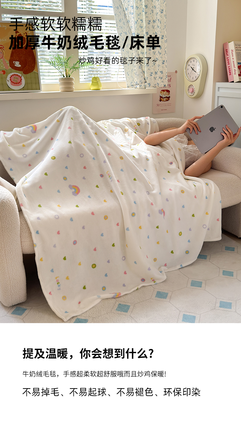 商品名称:沐芷 2025 A类牛奶绒毛毯印花盖毯毛毯午休毯卡通多功能沙发毯空调毯 提供买家秀(下载文件包,包含买家秀) 【绒】彩虹爱心