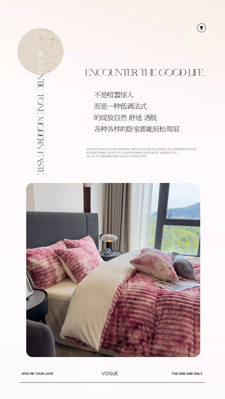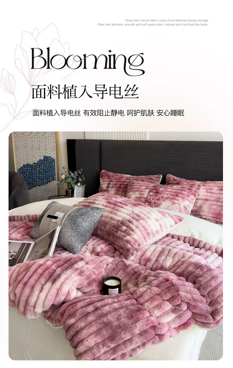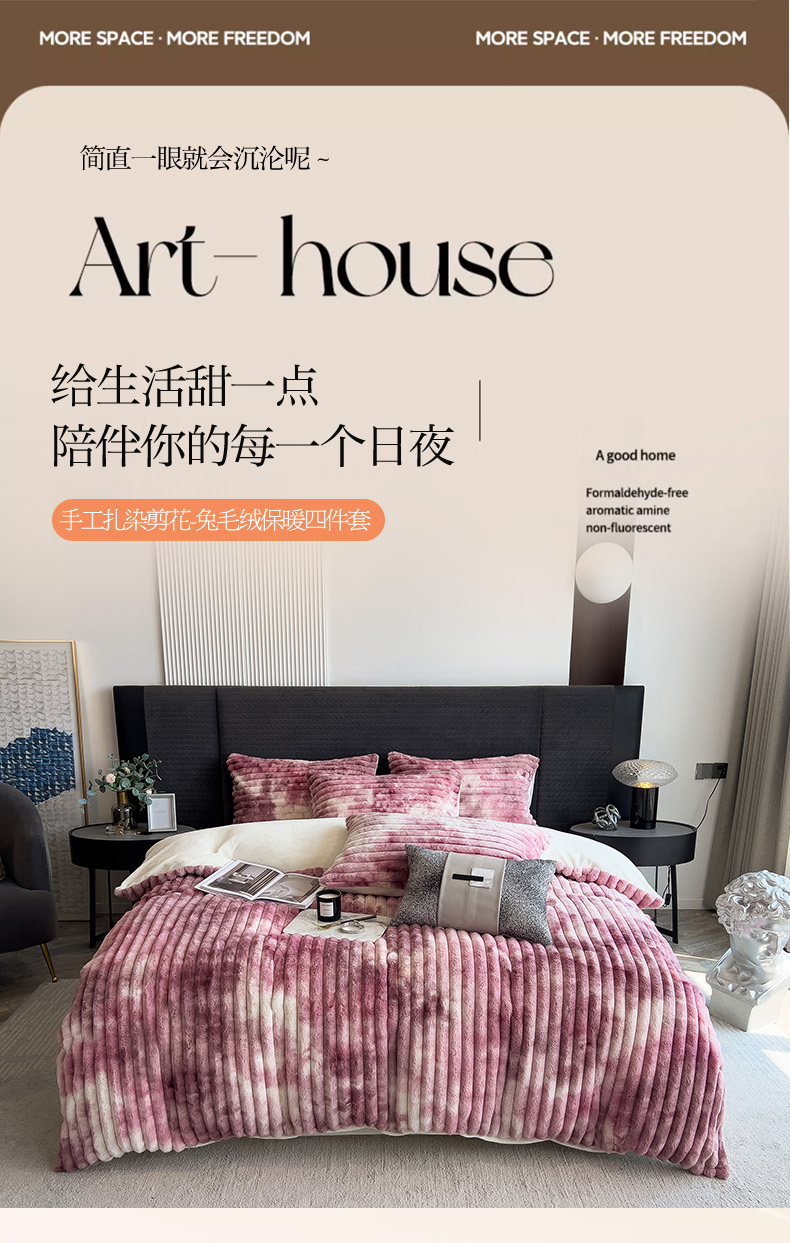 当前位置: 91家纺网 > 商品网购 > 床品套件 > 四件套 > 兔毛绒四件套 > 印季家纺 2025新款手工扎染剪花兔毛绒四件套 条纹-豆沙