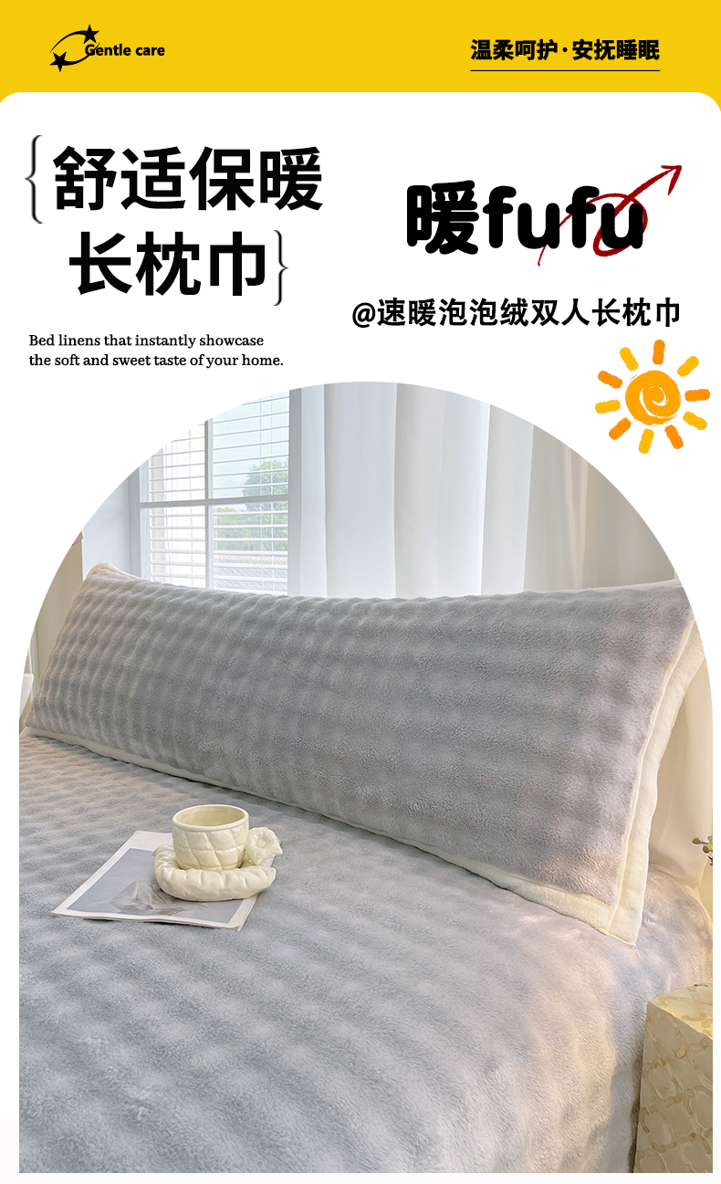 商品名称:雨彤家纺 2025新款泡泡牛奶绒长枕巾 牛奶绒枕巾-绅士灰 50*105cm(适合1米枕头)