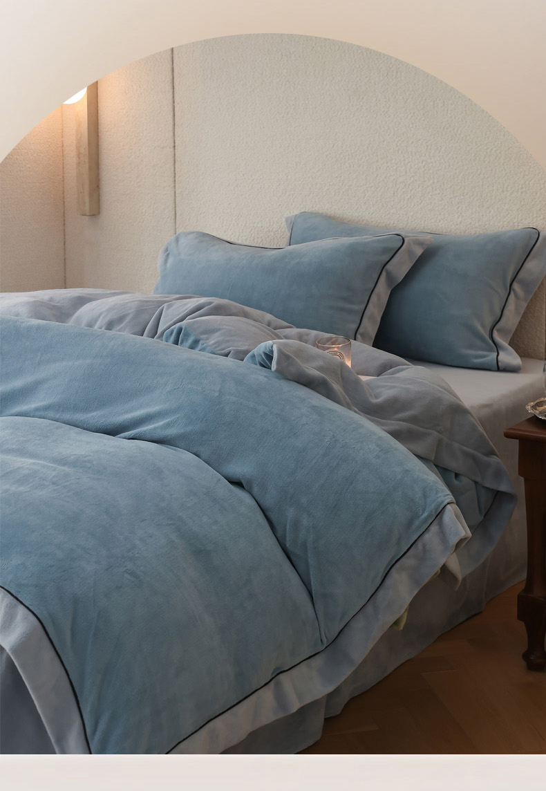 当前位置: 91家纺网 > 商品网购 > 床品套件 > 四件套 > 牛奶绒四件套 > 万盛家纺 2025新款牛奶绒宽边黑麻绳四件套最新图 悠悠粉-水冰蓝