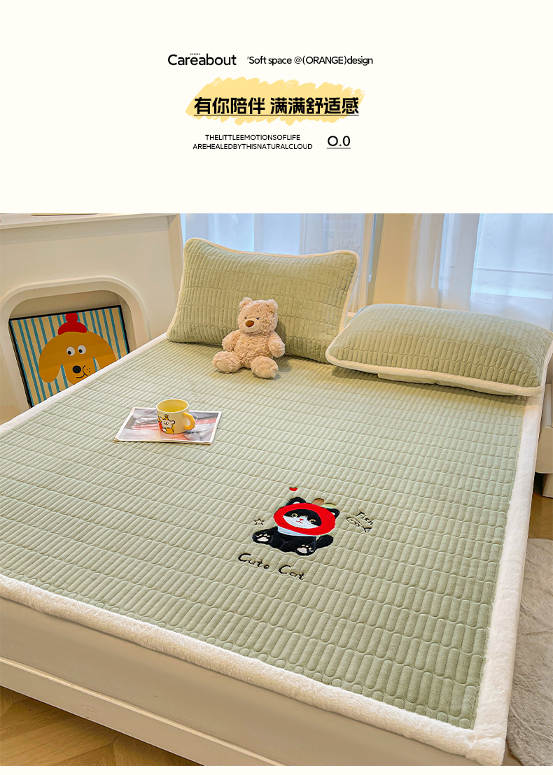 (总)喜居 2025新款牛奶绒卡通刺绣床褥垫-苹安熊,苹安熊-灰,苹安熊-咖,苹安熊-粉,苹安熊-蓝,苹安熊-绿