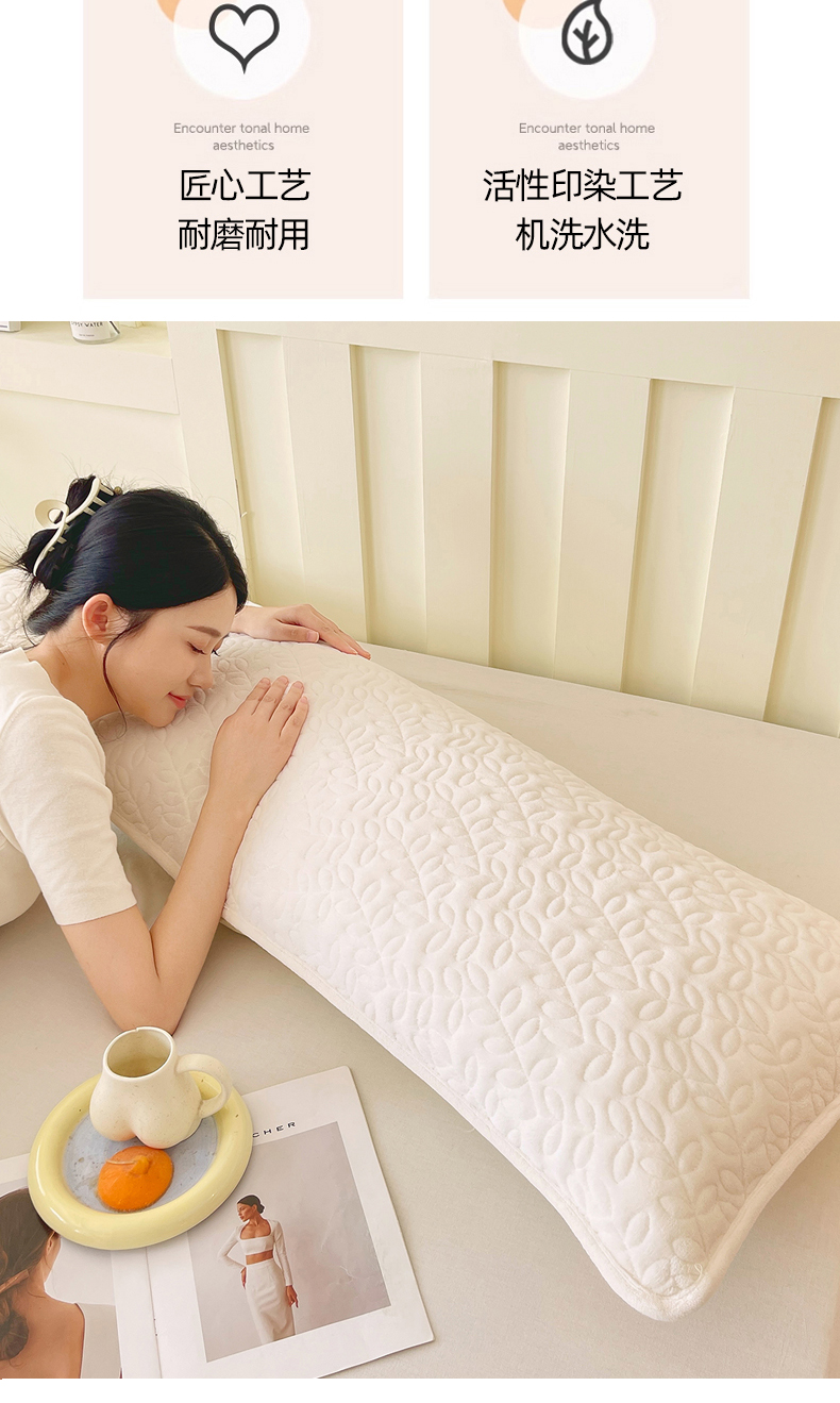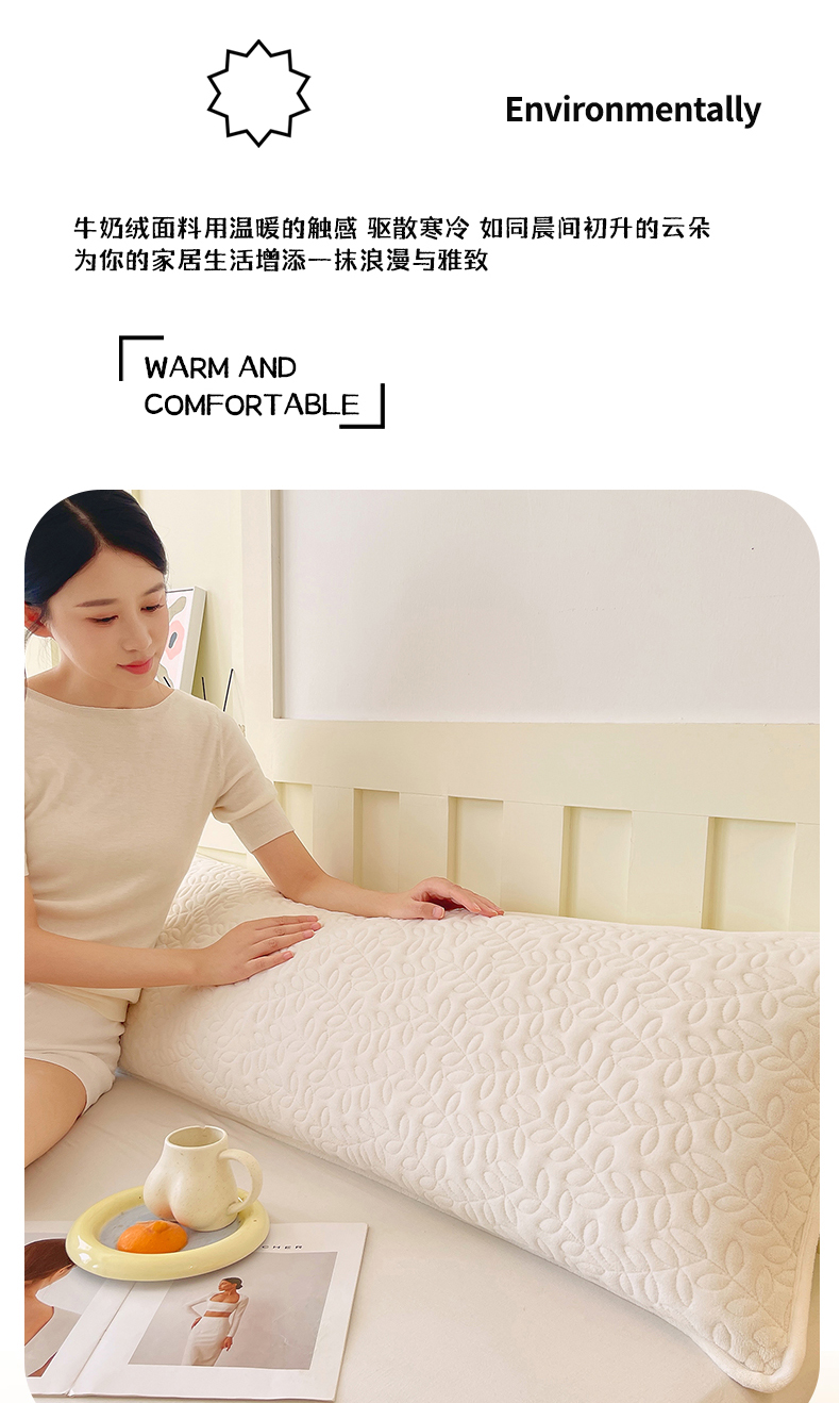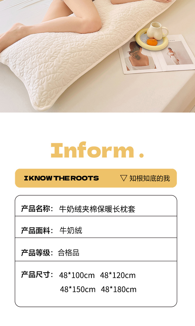 商品名称:雨彤家纺 2025新款牛奶绒夹棉包边长枕套 绒包边枕套-奶白