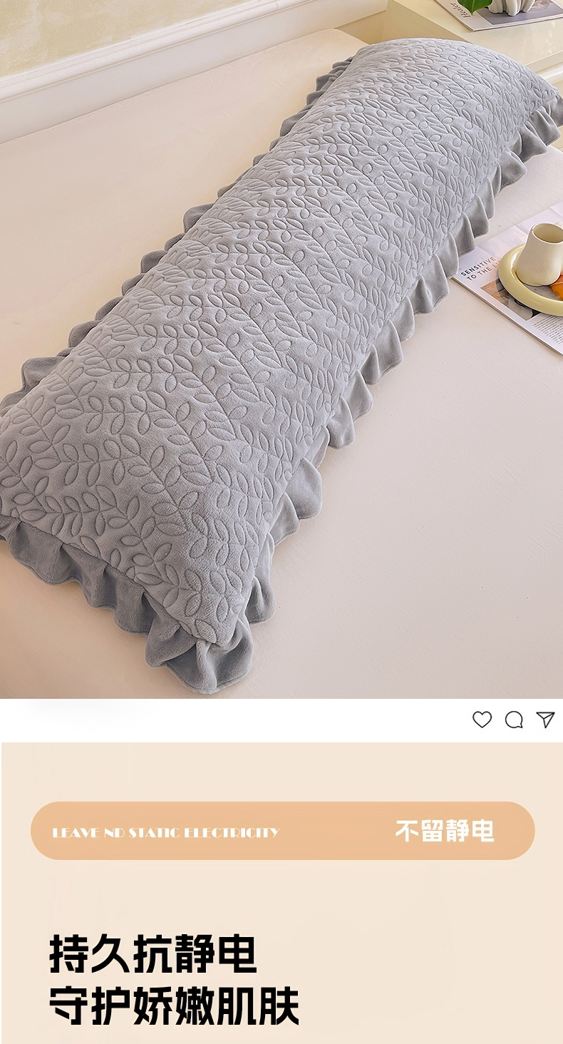 商品名称:雨彤家纺 2025新款牛奶绒花边夹棉长枕套 幸运草-银灰