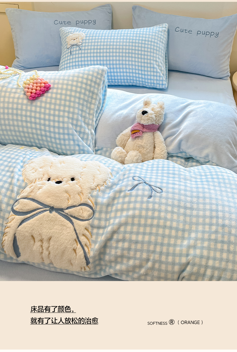 当前位置: 91家纺网 > 商品网购 > 床品套件 > 四件套 > 牛奶绒四件套 > 如一 2025新款高克重卡通贴布绣牛奶绒四件套 雪纳瑞