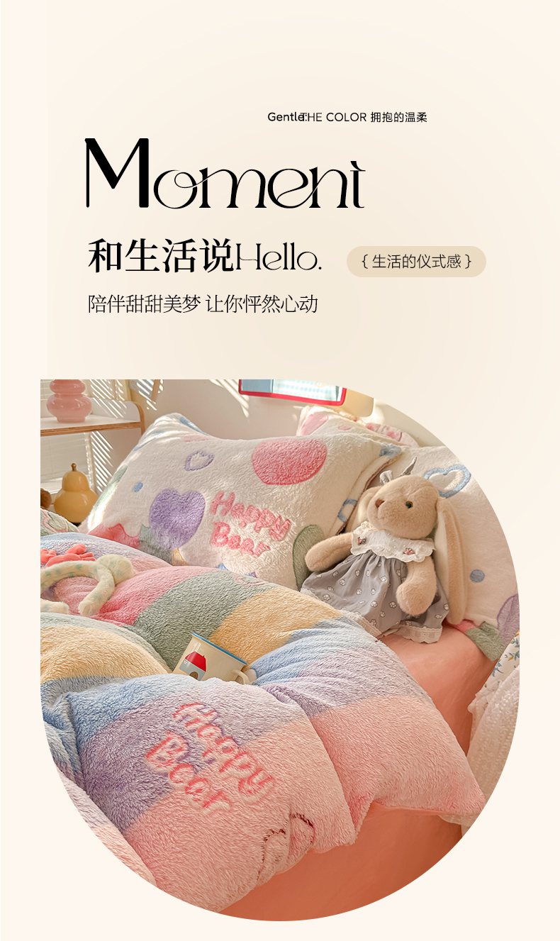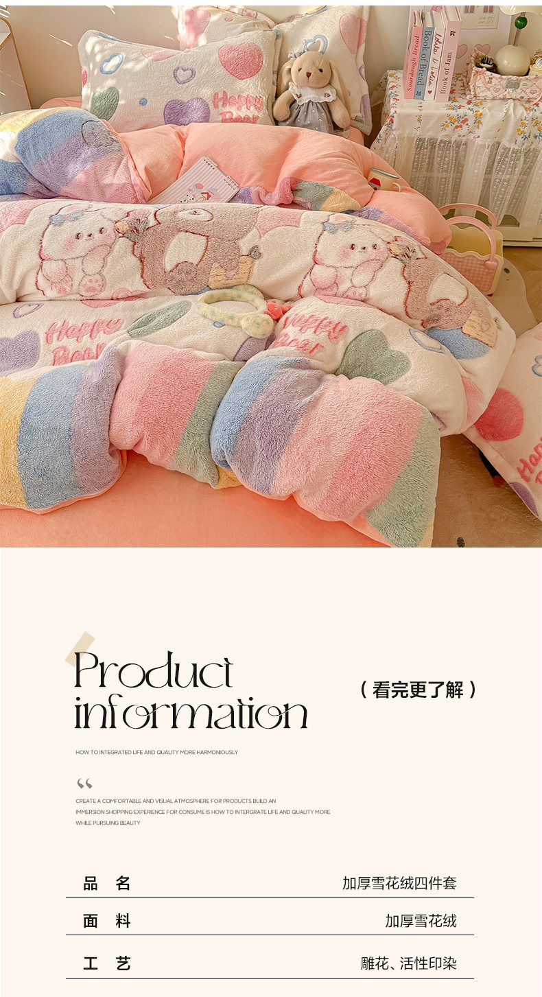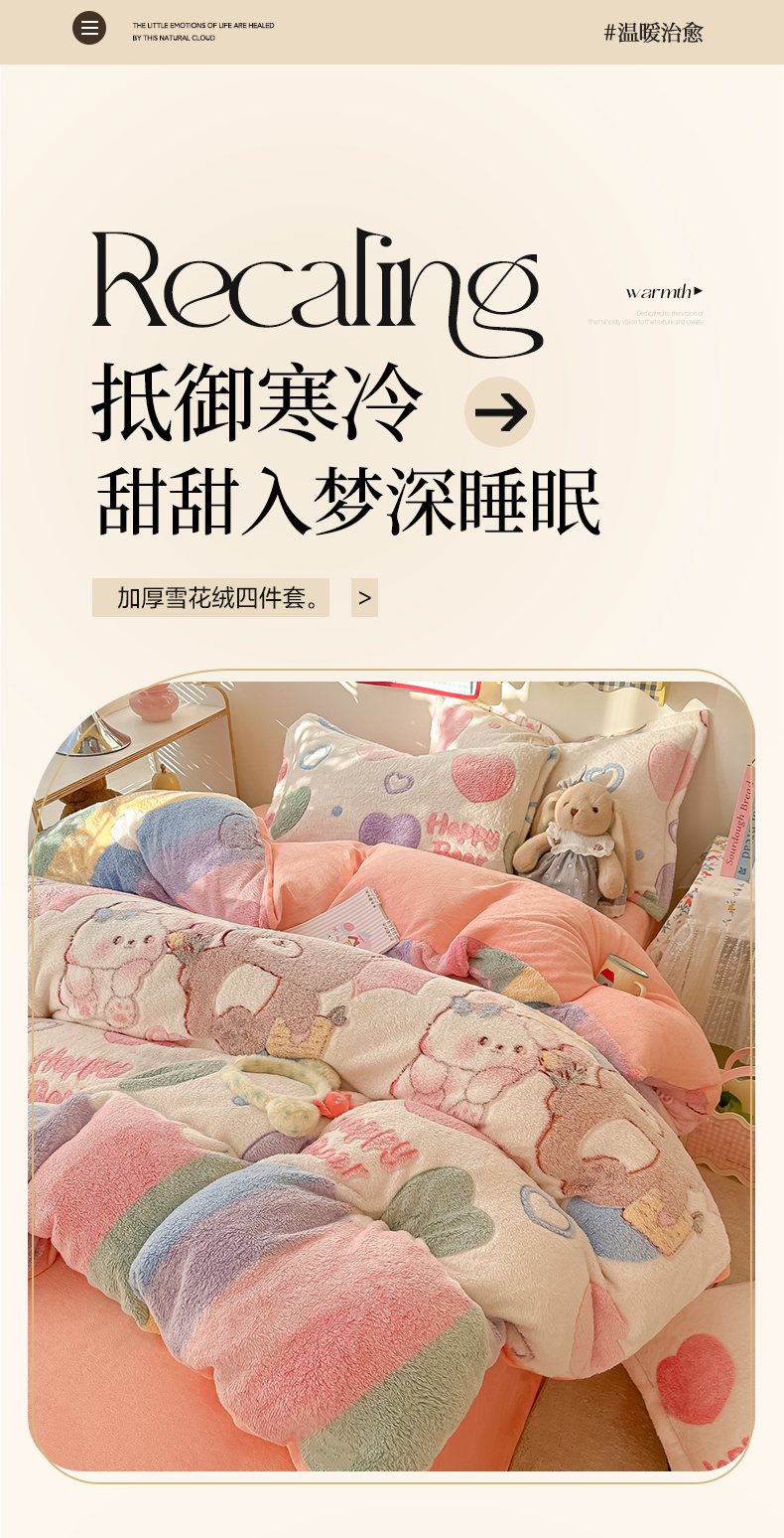 当前位置: 91家纺网 > 商品网购 > 床品套件 > 四件套 > 牛奶绒四件套 > 韩巢家纺 2025新款高克重雪花绒牛奶绒四件套系列 七彩