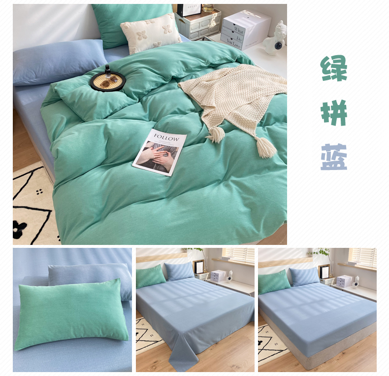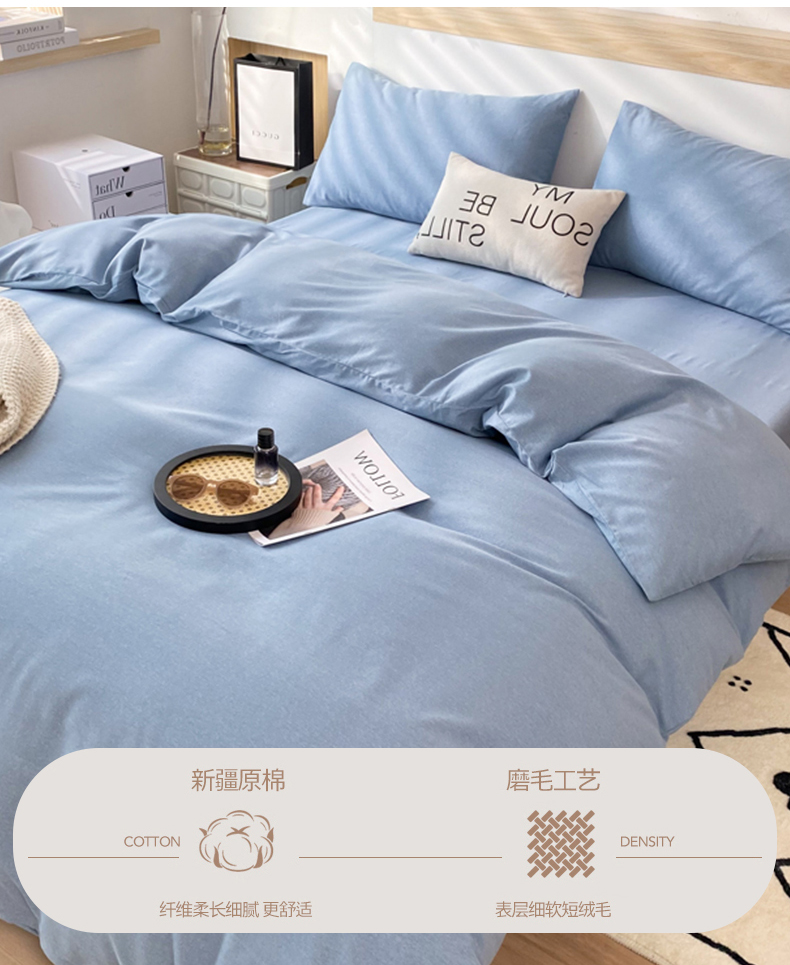 商品名称:玉元坊 2025新款混纺非全棉加厚磨毛四件套 蓝色