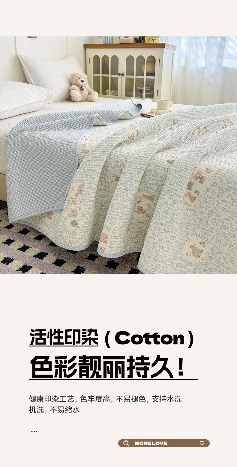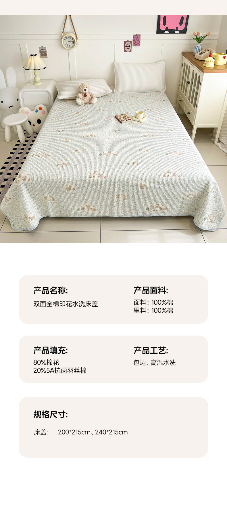 沐纯家居 2025新款跑量款双面纯棉 棉花填充水洗床盖 碎花兔熊