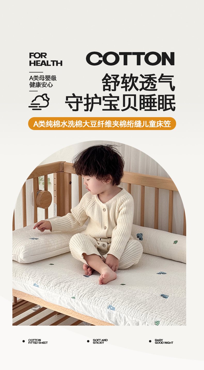 (总)荷马之梦 2025新款A类纯棉水洗棉大豆纤维夹棉绗缝儿童床笠-淳真系列,淳真-蓝小车,淳真-兔小花,淳真-小骨头,淳真-小苹果,淳真-星星龙