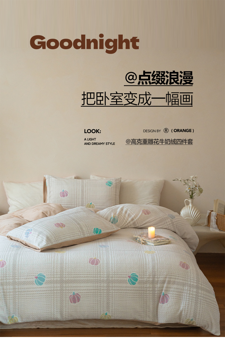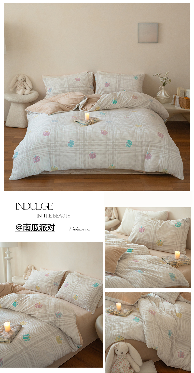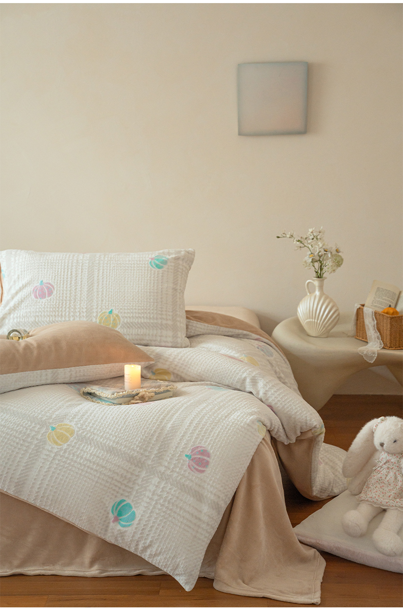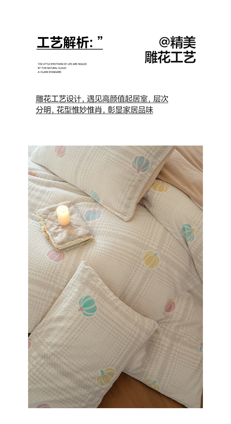 当前位置: 91家纺网 > 商品网购 > 床品套件 > 四件套 > 牛奶绒四件套 > (总)华超针织 2025新款 雕花牛奶绒四件套-南瓜派对