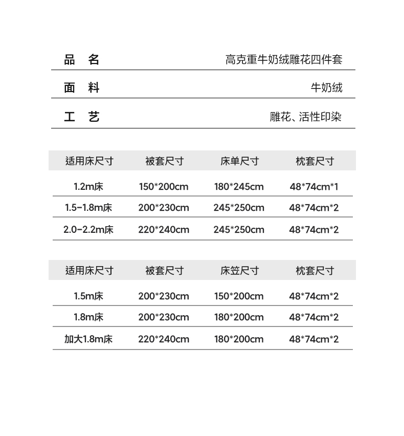 【床笠款】1.8四件套-被套220x240 | ¥150.00 |