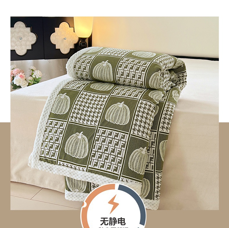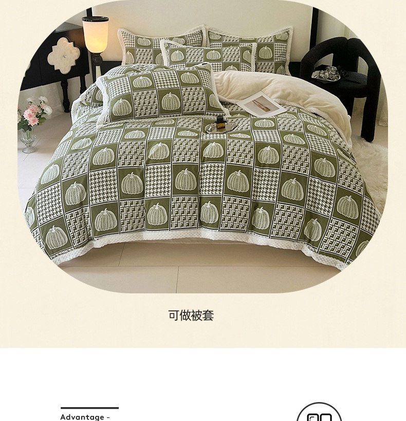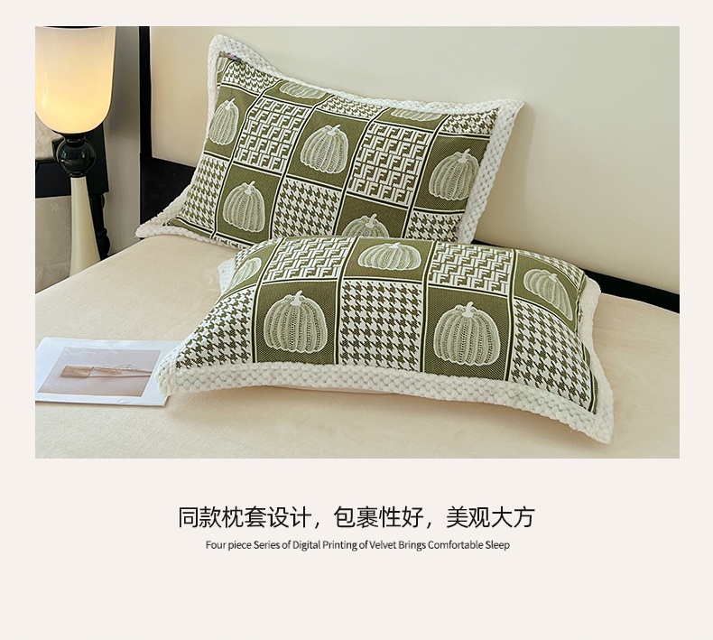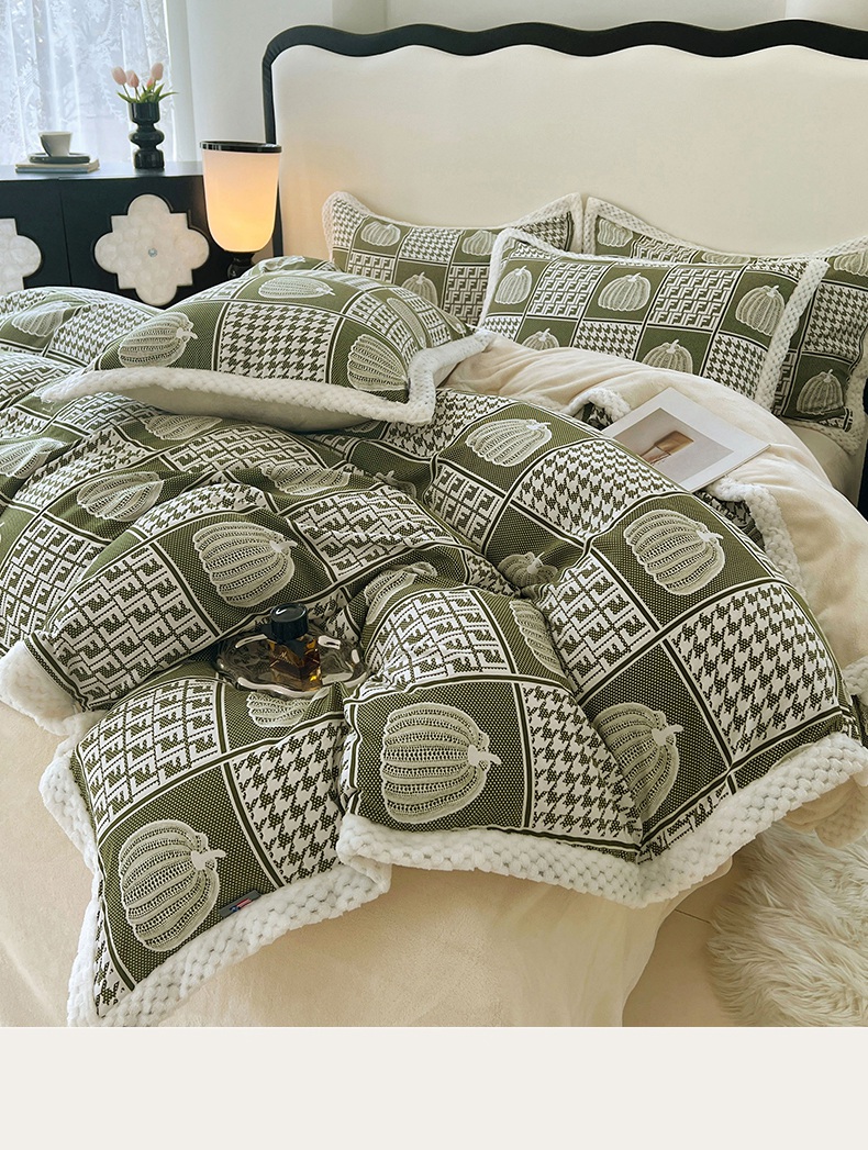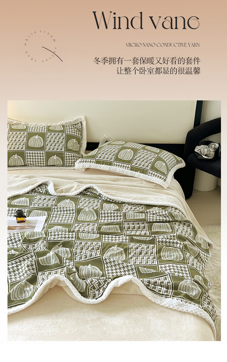yyds网供 2025新款棉加绒四件套多功能盖毯被套牛奶绒四件套床单款-南瓜 绿野南瓜