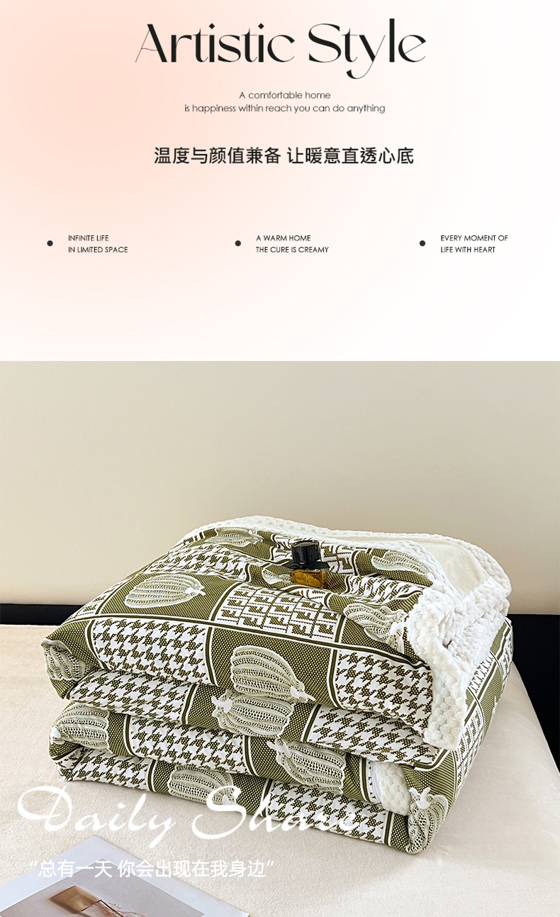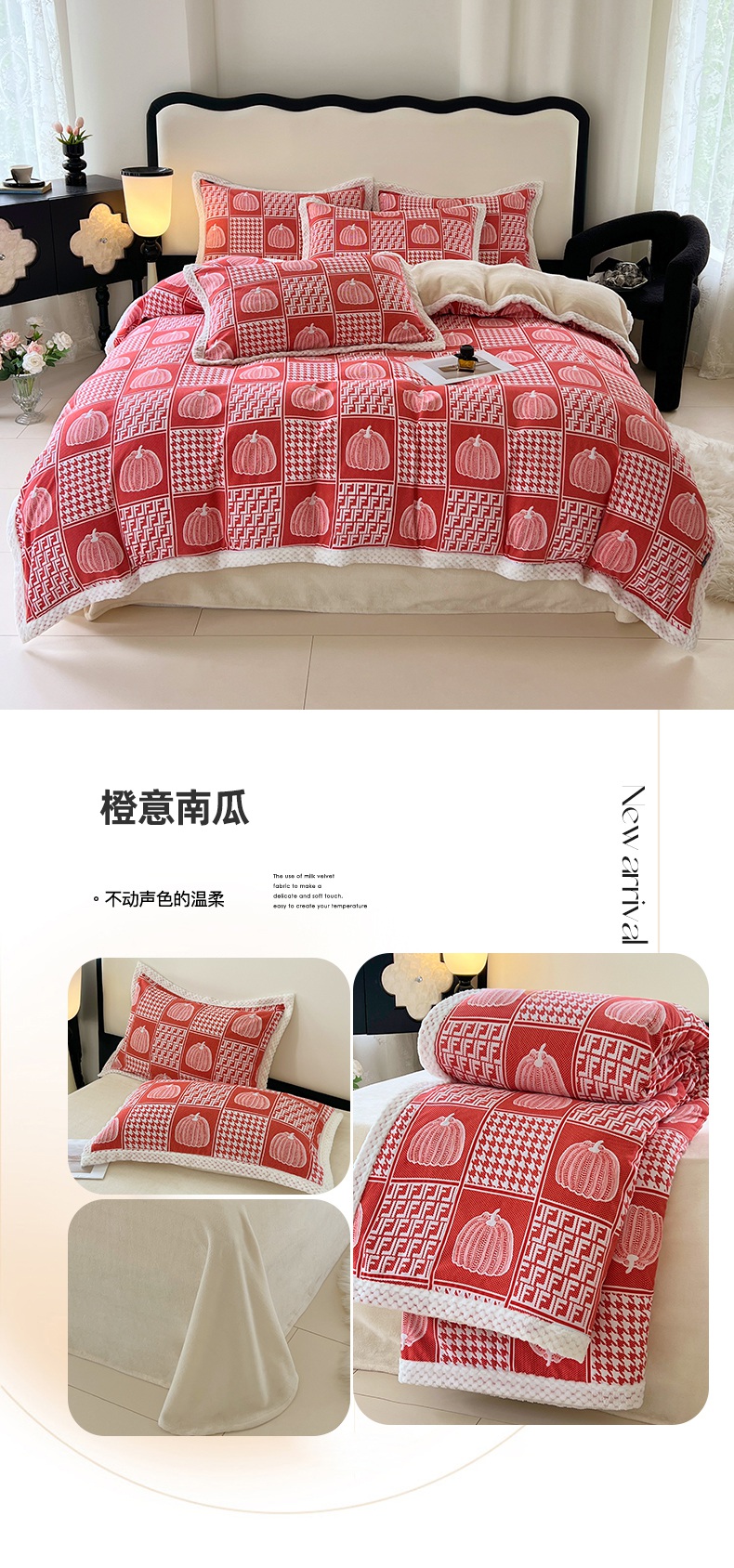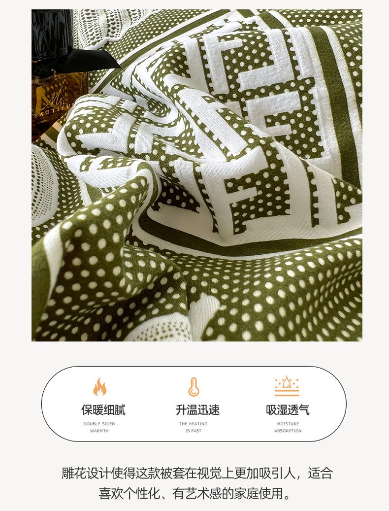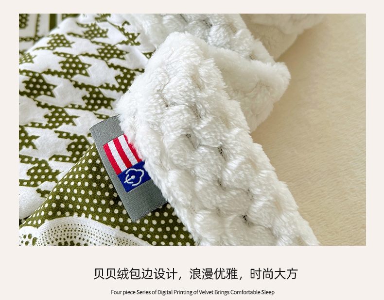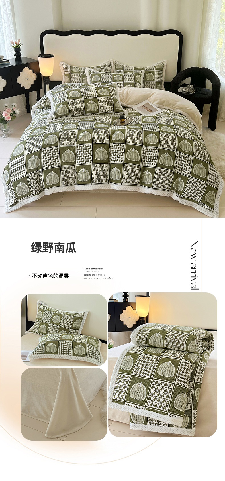 yyds网供 2025新款棉加绒四件套多功能盖毯被套牛奶绒四件套床单款-南瓜 绿野南瓜