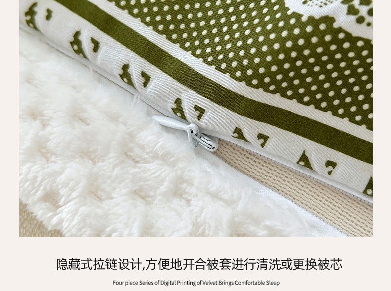 商品名称:yyds网供 2025新款棉加绒四件套多功能盖毯被套牛奶绒四件套床单款-南瓜 绿野南瓜