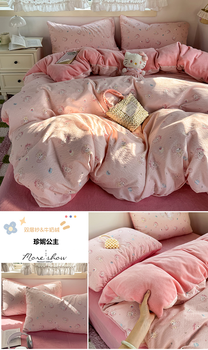 当前位置: 91家纺网 > 商品网购 > 床品套件 > 四件套 > 牛奶绒四件套 > 多品家纺 2025新款云感双层纱高克重牛奶绒四件套 珍妮公主