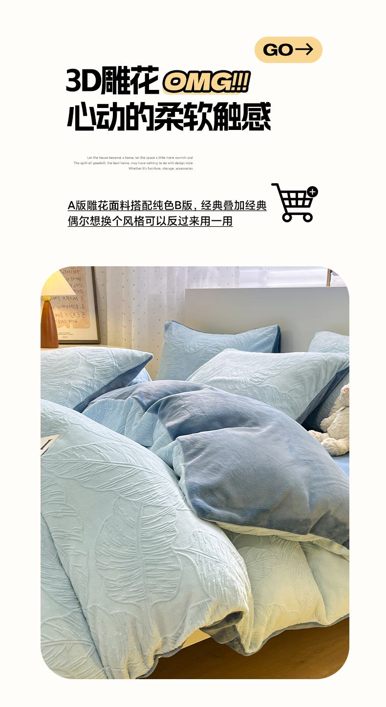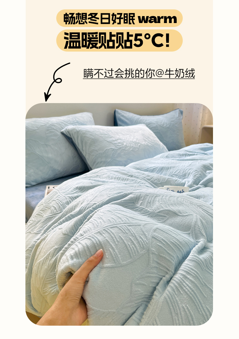 当前位置: 91家纺网 > 商品网购 > 床品套件 > 四件套 > 牛奶绒四件套 > 如一 2025新款3D雕花牛奶绒四件套 芭蕉叶-蓝