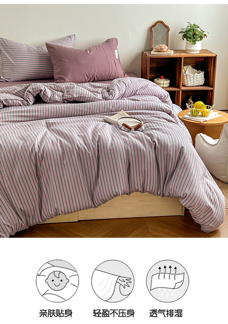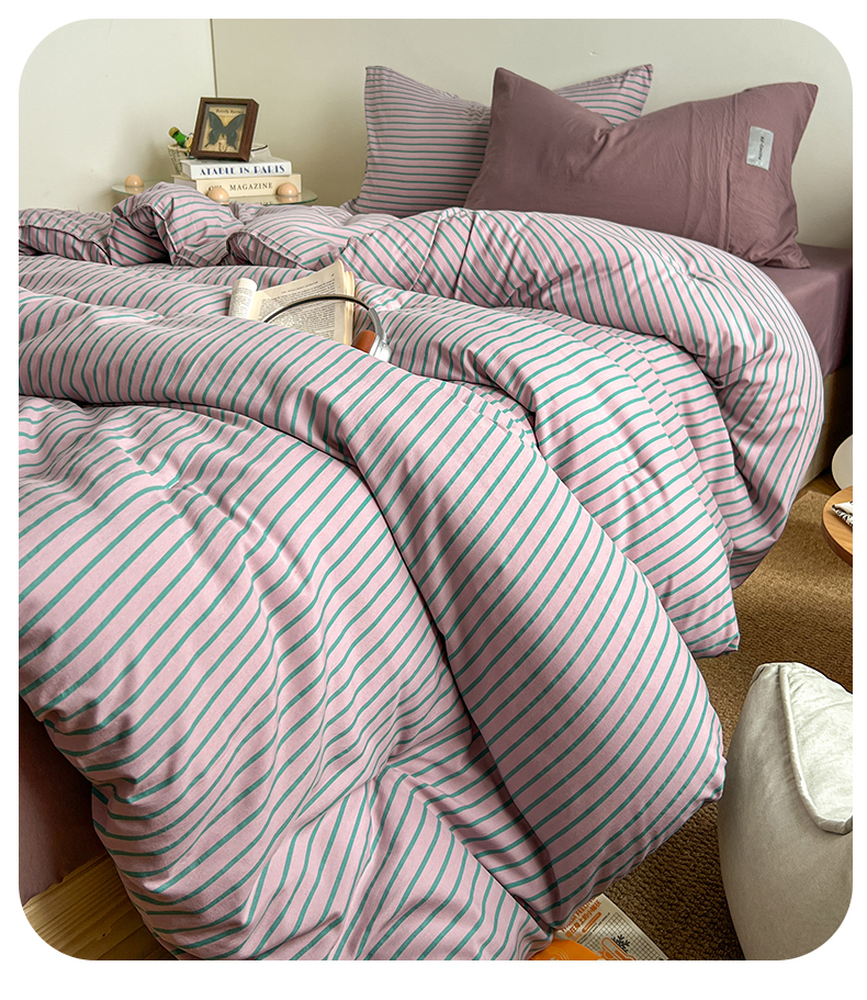 (总)优选良品 2025新款韩式无印风水洗棉拼色学生三件套床单床笠款四件套,条纹卡其+深红,条纹水蓝+咖啡,条纹香芋紫+深紫,条纹抹茶绿+酱紫,条纹海洋蓝+深蓝,组合,条纹柠檬黄+咖啡