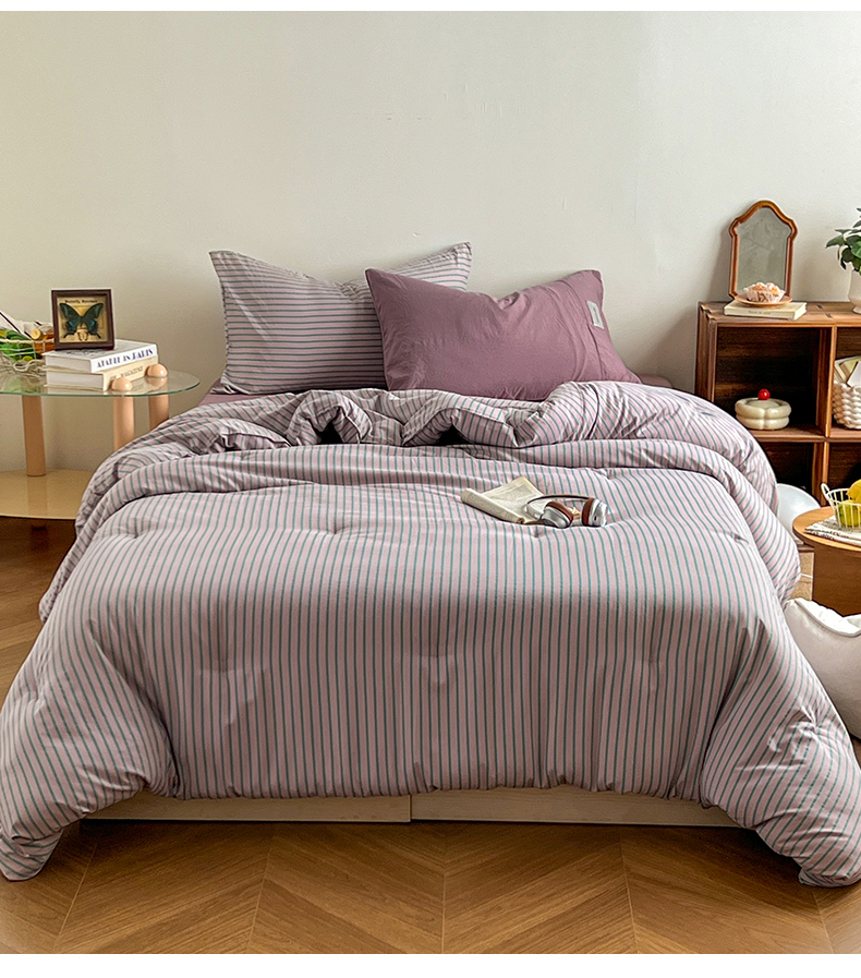 优选良品 2025新款冬被水洗棉被子被芯 条纹浅紫+香芋紫