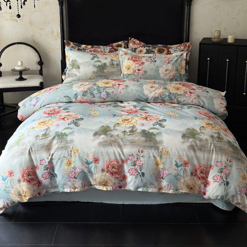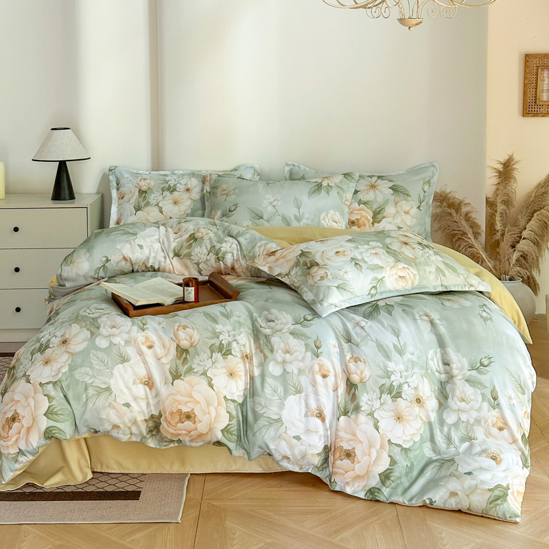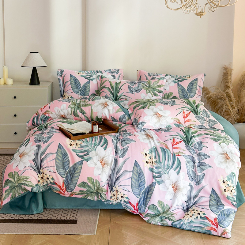 桔禾家纺 2025新款田园花卉小清新直播加厚植物羊绒四件套高克重磨毛跨境四件套 大量现货 繁花海梦