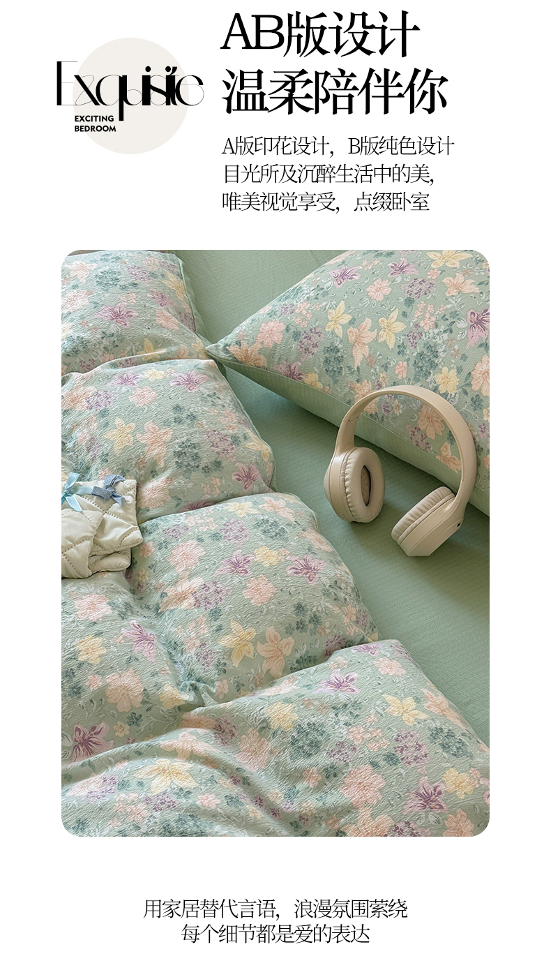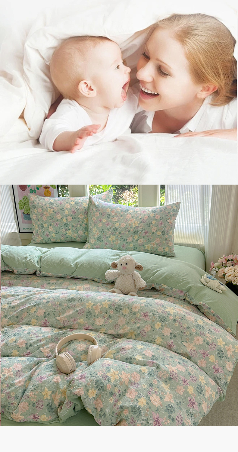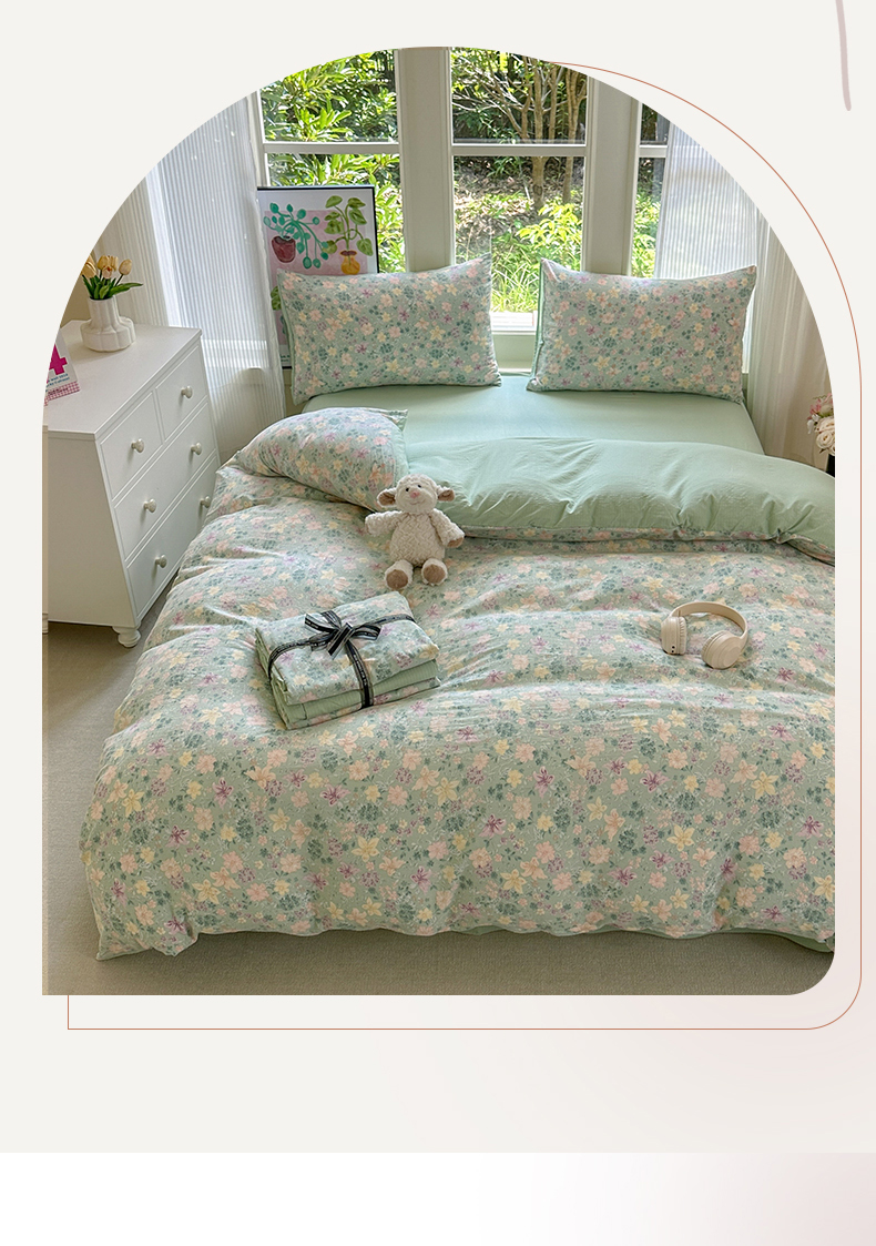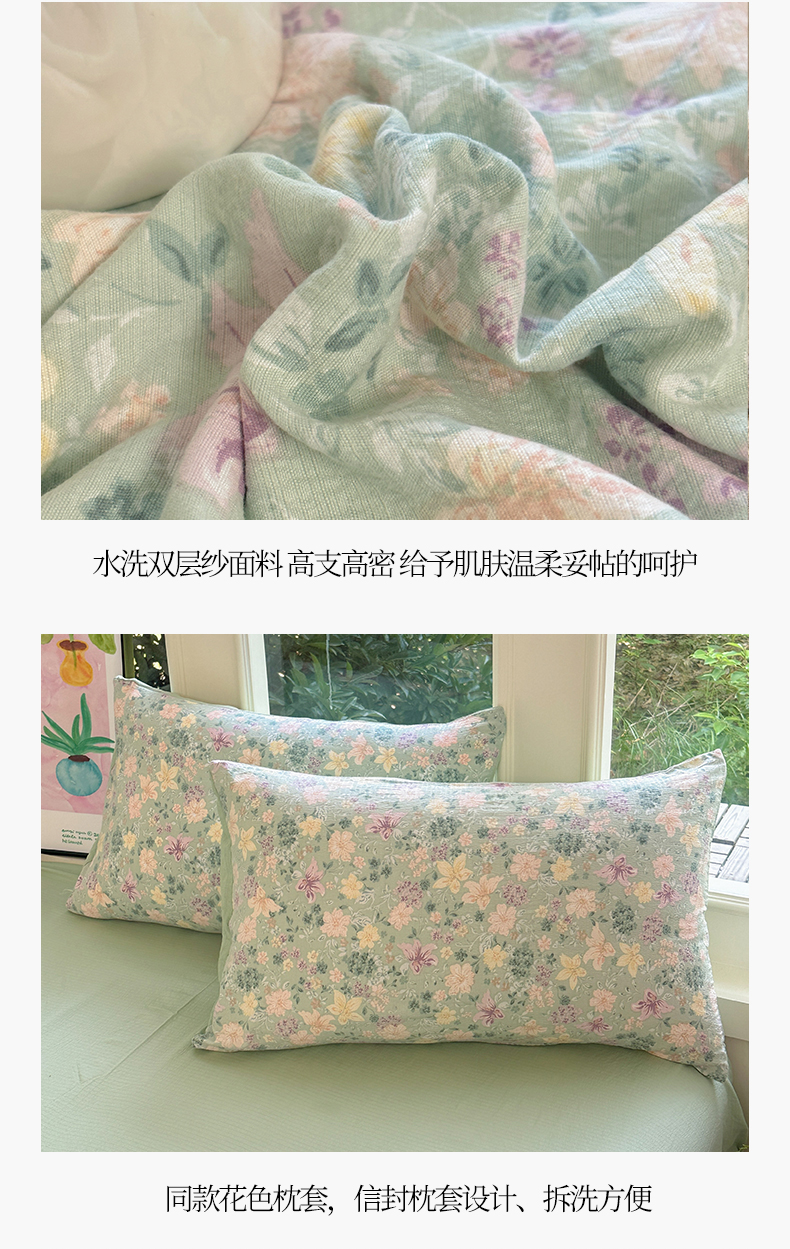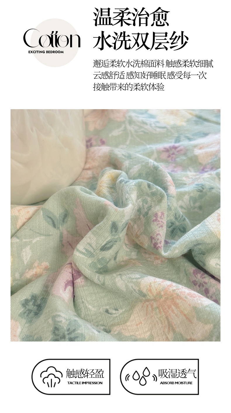 当前位置: 91家纺网 > 商品网购 > 床品套件 > 四件套 > 化纤普通四件套 > 桔禾家纺 2025新款小清新水洗棉有氧双层纱印花云感木棉皱皱纱四件套 斯兰