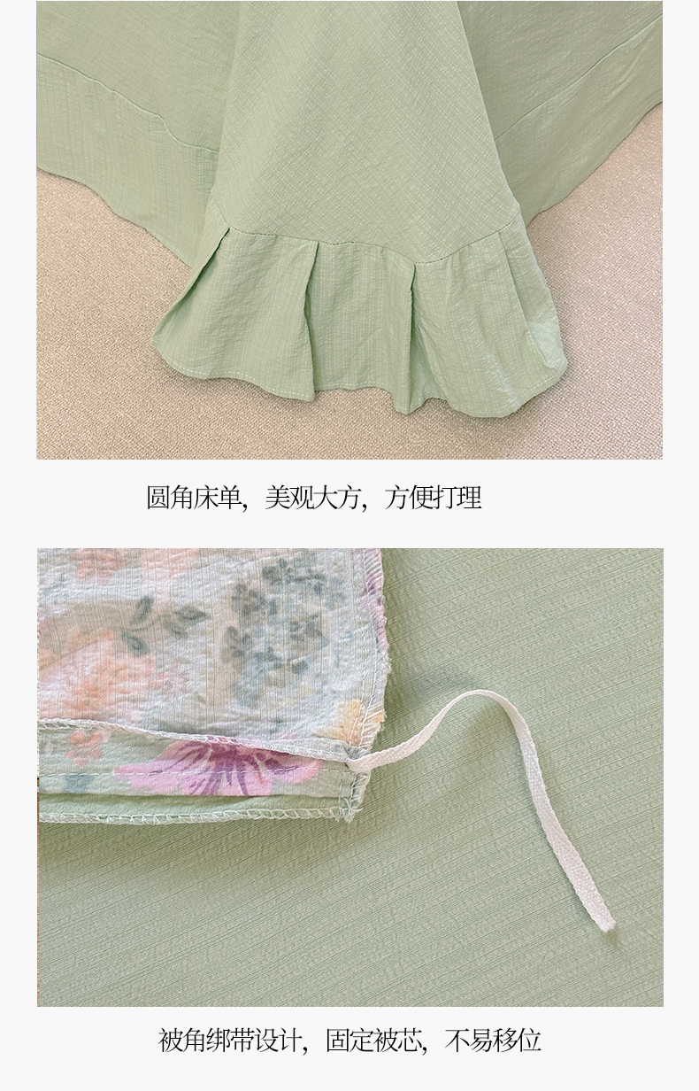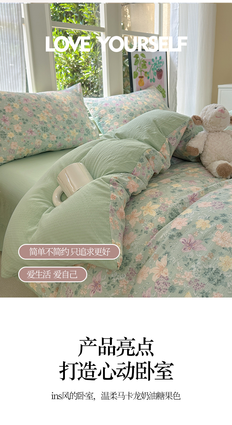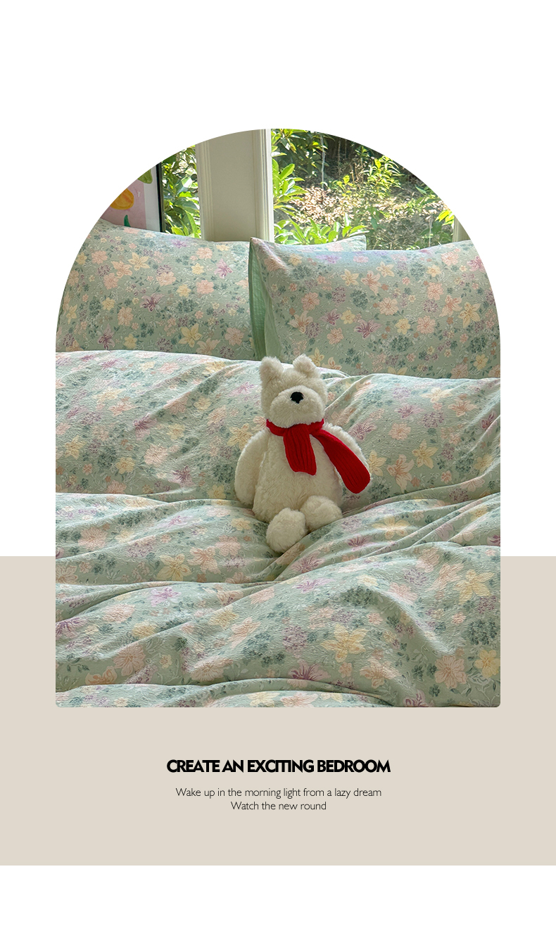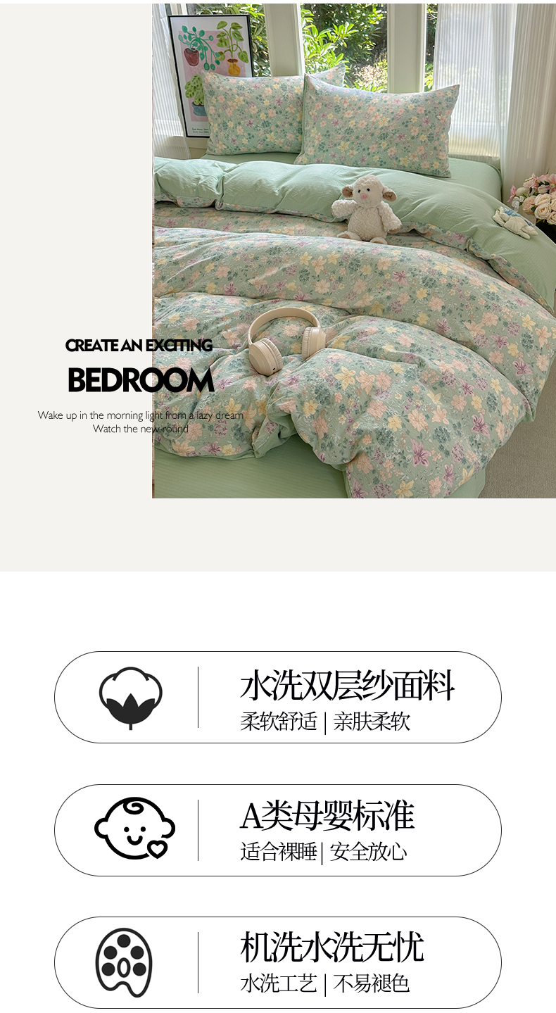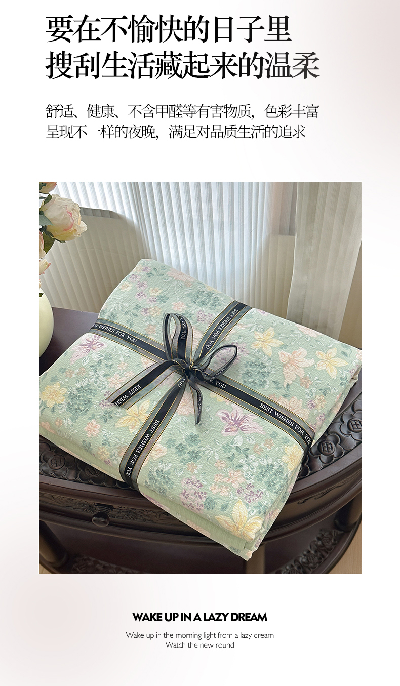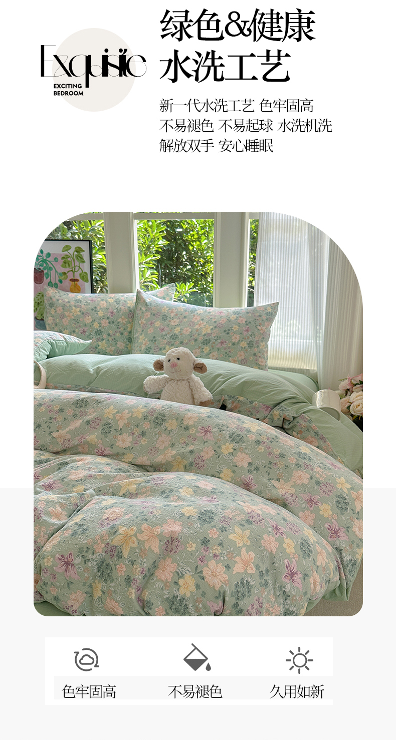 当前位置: 91家纺网 > 商品网购 > 床品套件 > 四件套 > 化纤普通四件套 > 桔禾家纺 2025新款小清新水洗棉有氧双层纱印花云感木棉皱皱纱四件套 斯兰