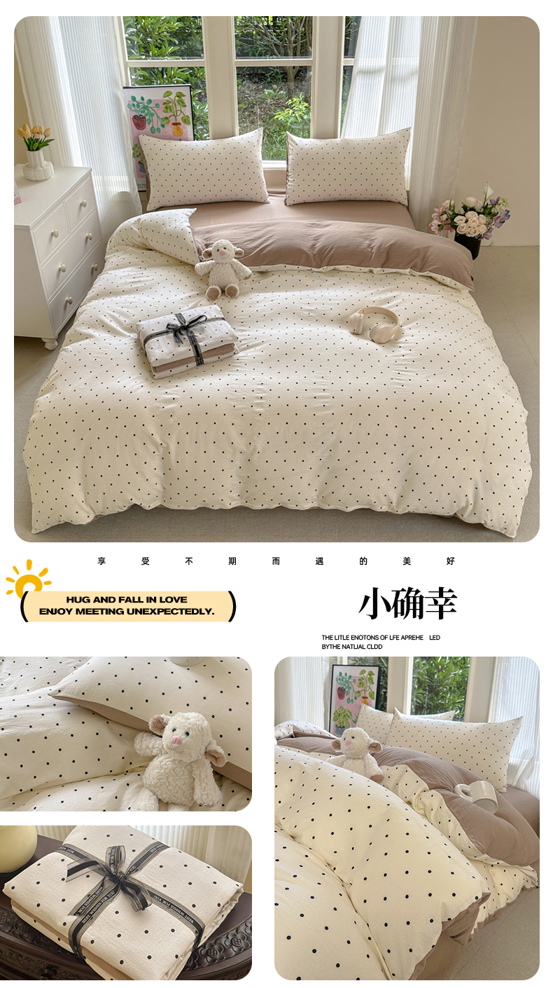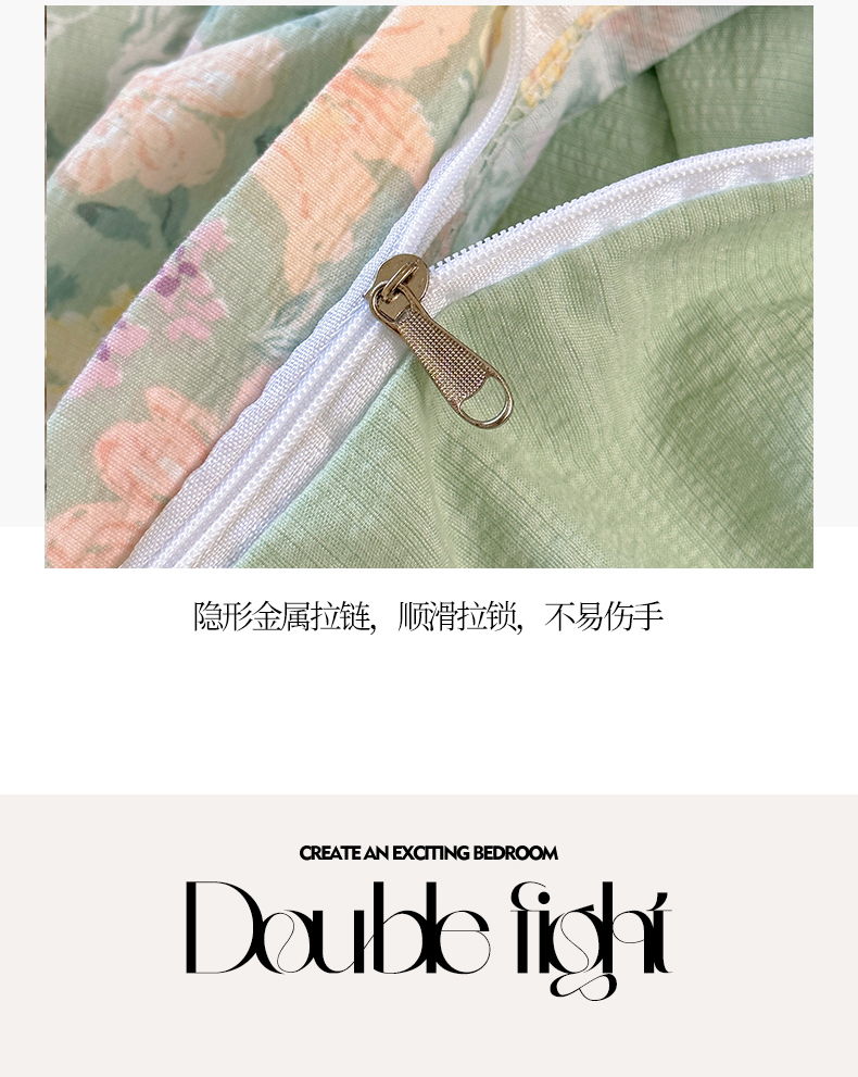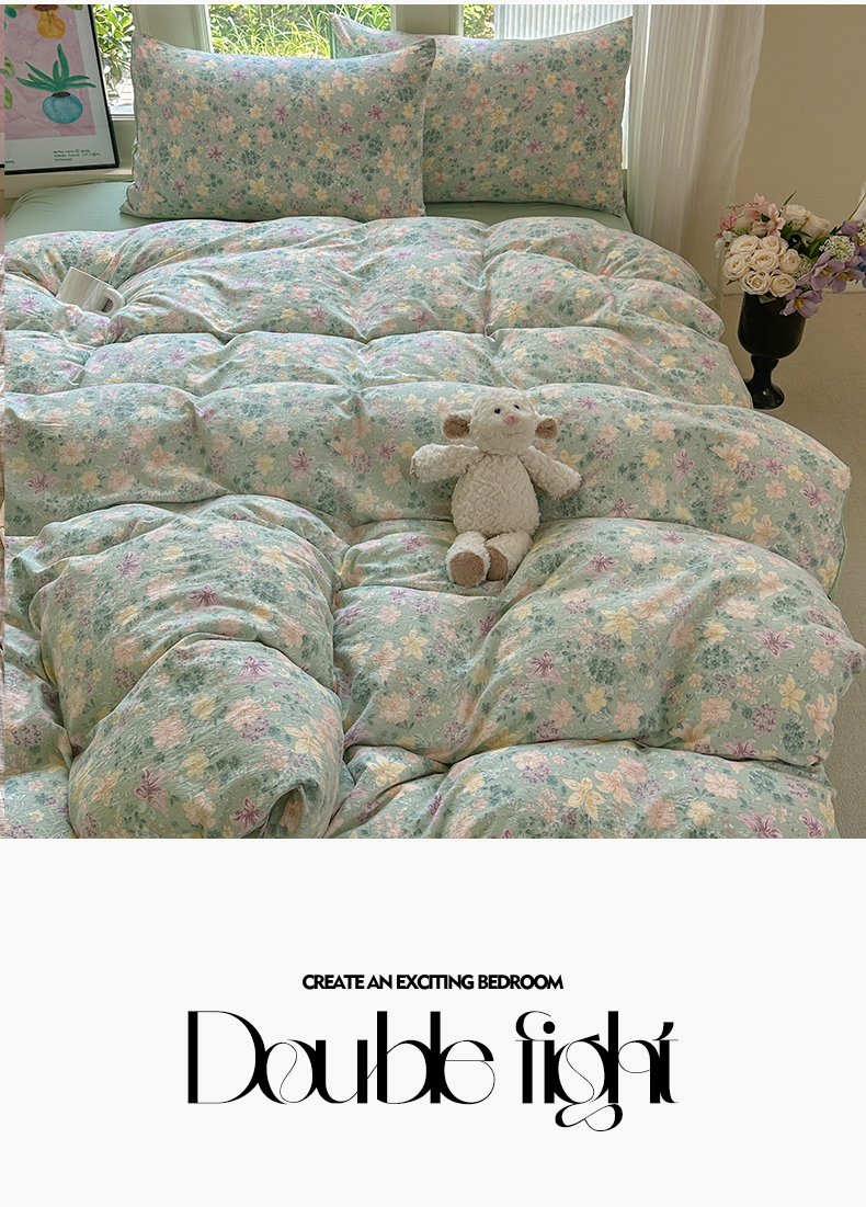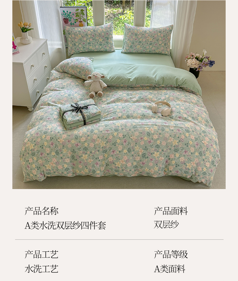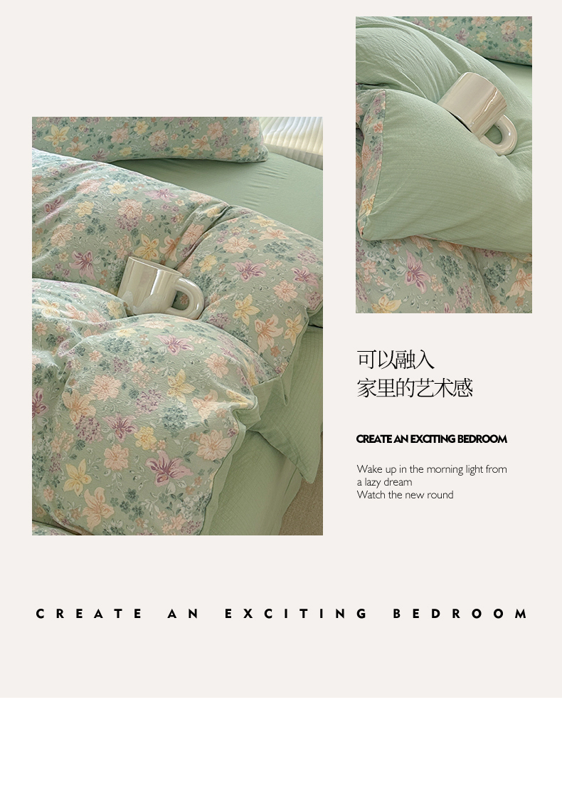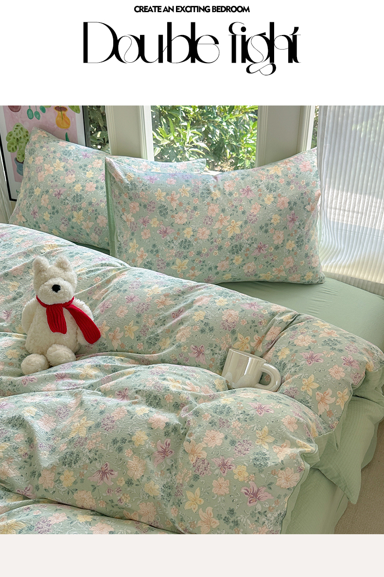 当前位置: 91家纺网 > 商品网购 > 床品套件 > 四件套 > 化纤普通四件套 > 桔禾家纺 2025新款小清新水洗棉有氧双层纱印花云感木棉皱皱纱四件套 斯兰