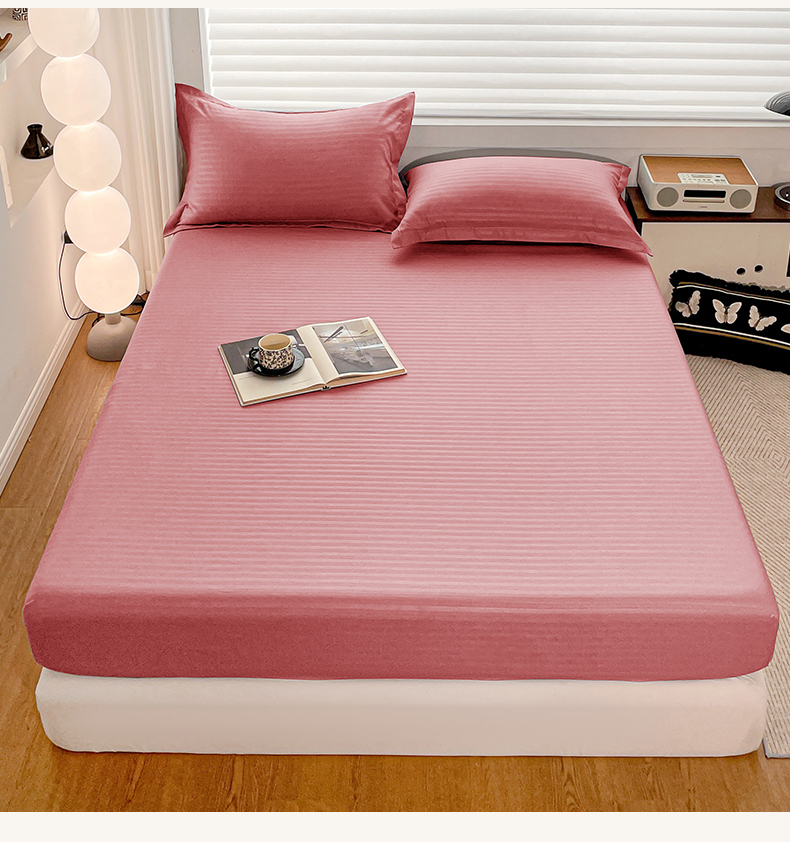 恬澳家纺 2025新款简约磨毛压花床笠外贸跨境电商亚马逊速卖通单床笠三件套欧美尺寸多多跨境平台-场景二 条纹-粉