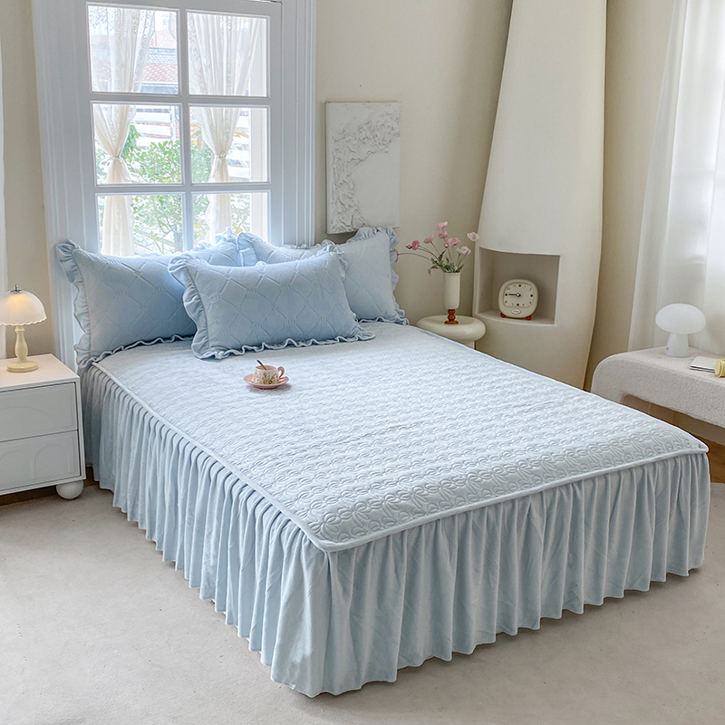 (总)乐嘉盈2025年新款纯色刺绣床裙款牛奶绒四件套-云栖,云栖-豆沙,云栖-粉,云栖-蓝,云栖-绿,云栖-米白,云栖-紫