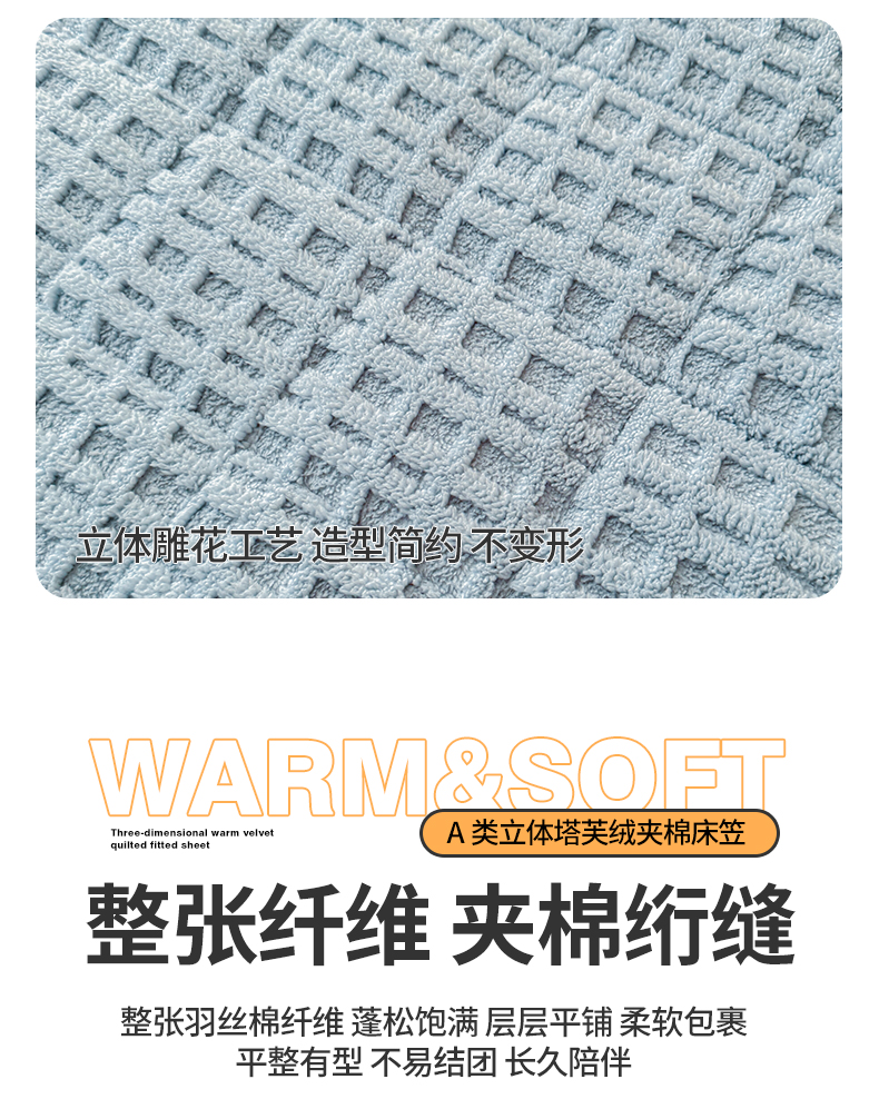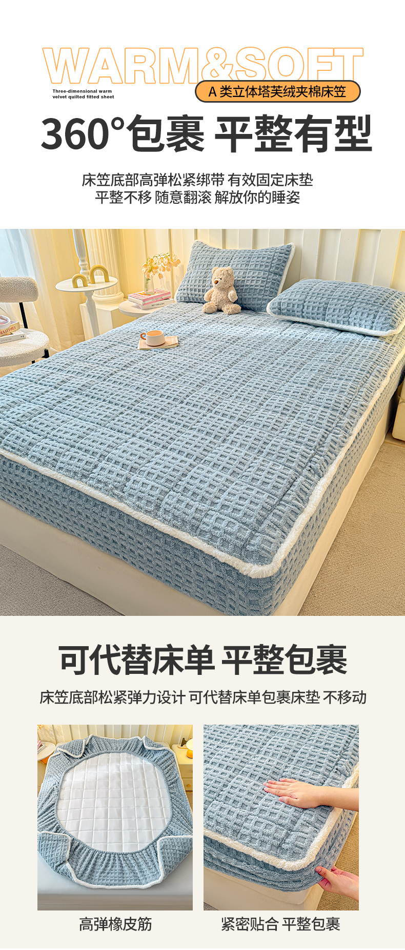 予梦家纺 2025新款塔芙绒夹棉床笠单床笠 星梦格 苍蓝