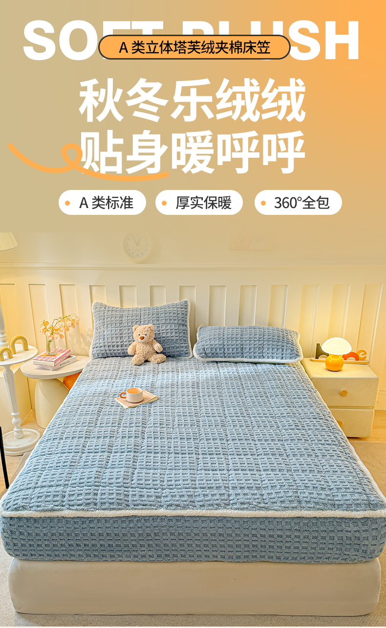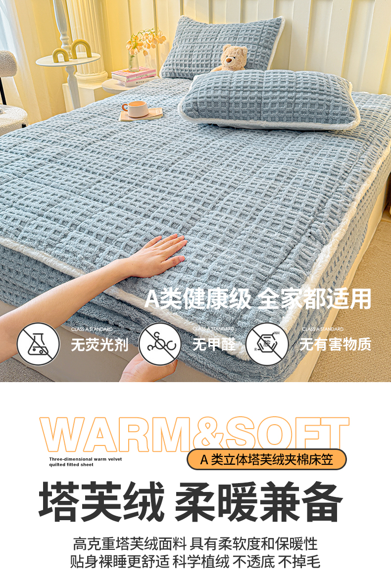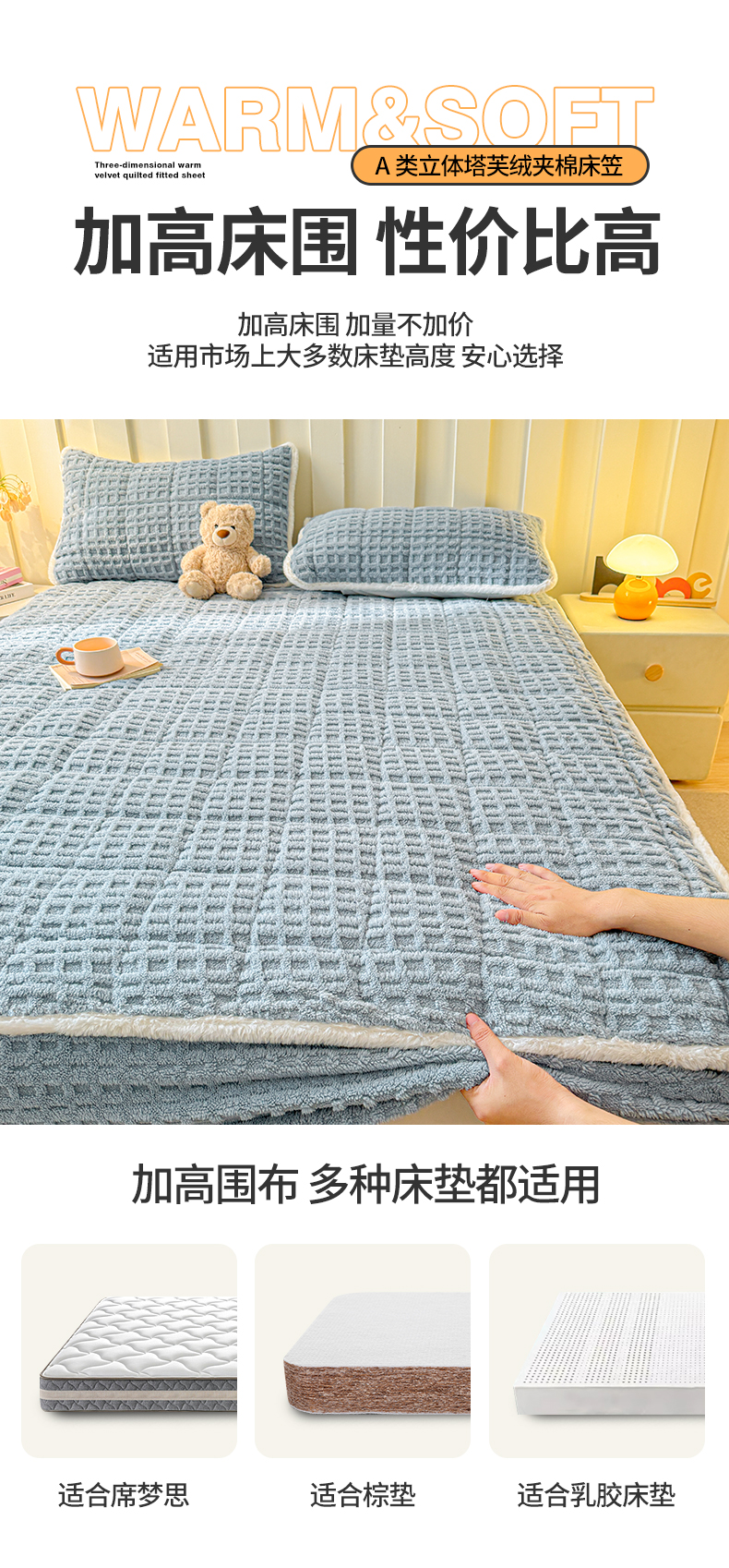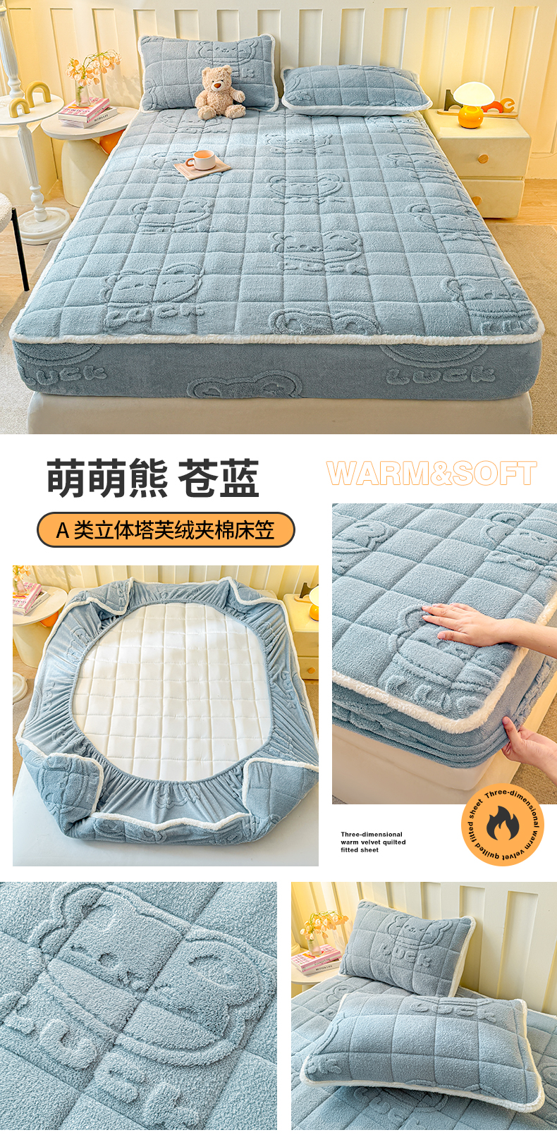 (总)予梦家纺 2025新款塔芙绒加厚夹棉床笠床垫保护套,萌萌熊 苍蓝,萌萌熊 果绿,萌萌熊 卡其,萌萌熊 星灰,星梦格 苍蓝,星梦格 果绿,星梦格 卡其,星梦格 星灰
