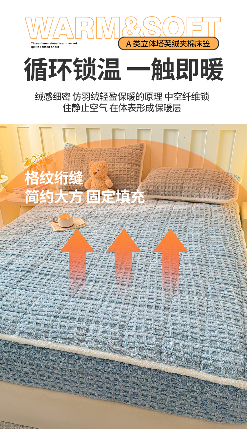 (总)予梦家纺 2025新款塔芙绒夹棉床笠单床笠,萌萌熊 苍蓝,萌萌熊 果绿,萌萌熊 卡其,萌萌熊 星灰,星梦格 苍蓝,星梦格 果绿,星梦格 卡其,星梦格 星灰
