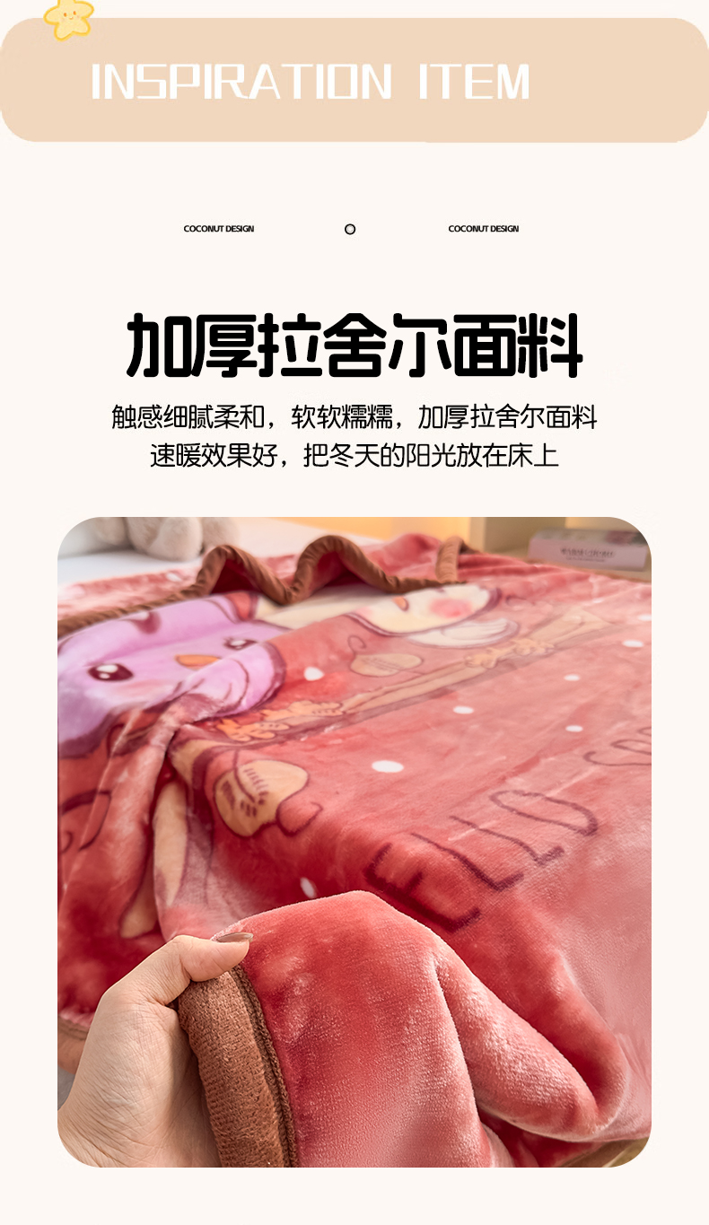商品名称:爱彼家纺 2025冬季新款拉舍尔童毯毛毯毯子-系列二 拉舍尔童毯-小小公主04咖啡色
