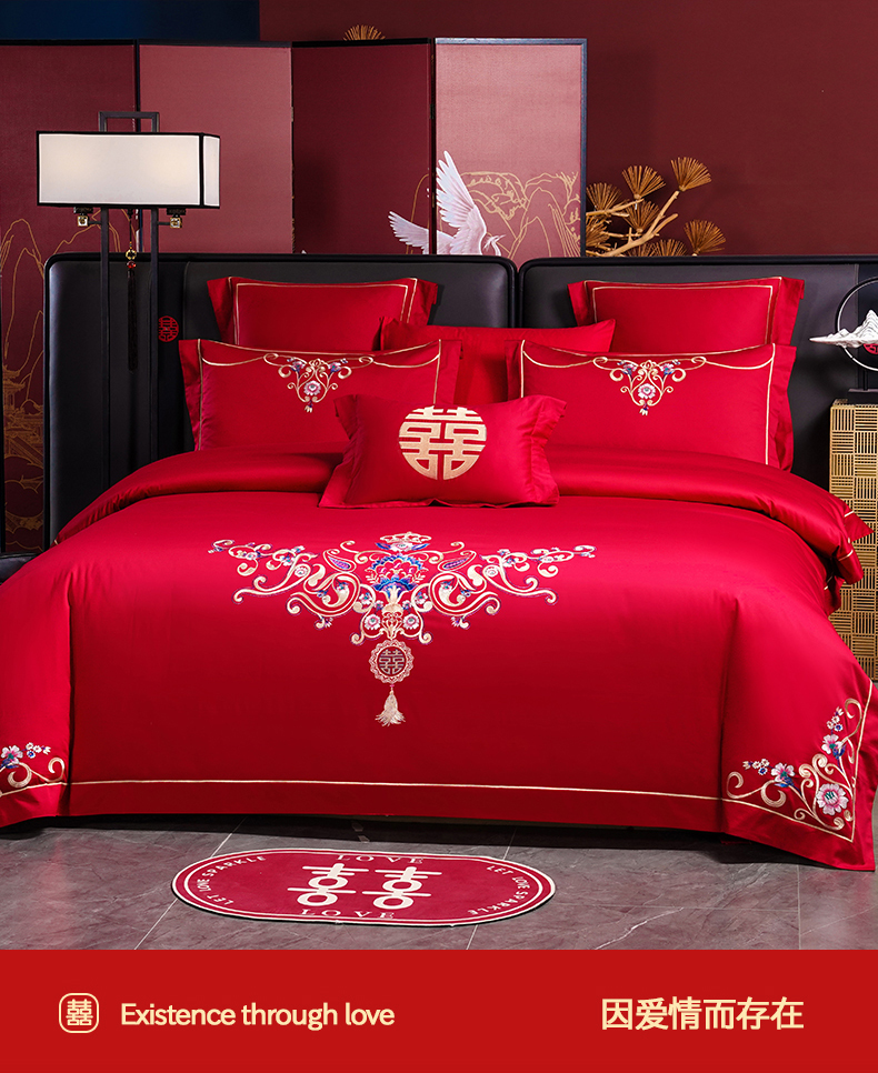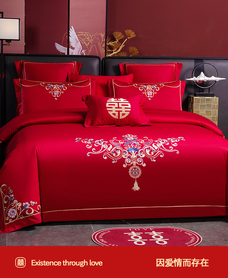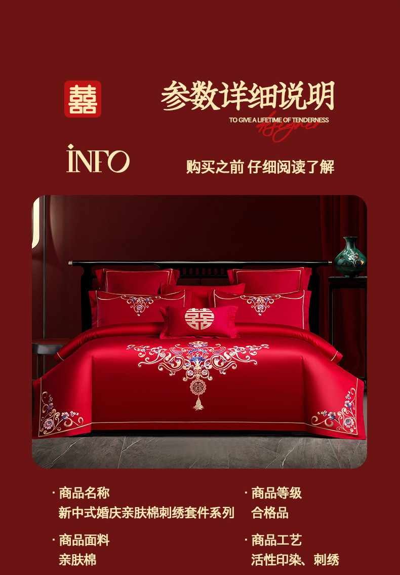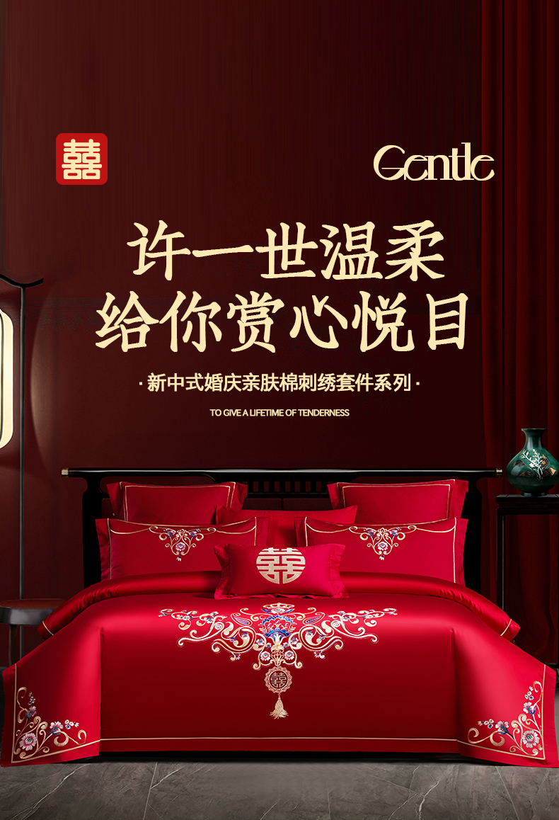 当前位置: 91家纺网 > 商品网购 > 床品套件 > 四件套 > 婚庆四件套 > 置顶家纺 2025新款新中式婚庆亲肤棉绣花四件套 良辰-大红