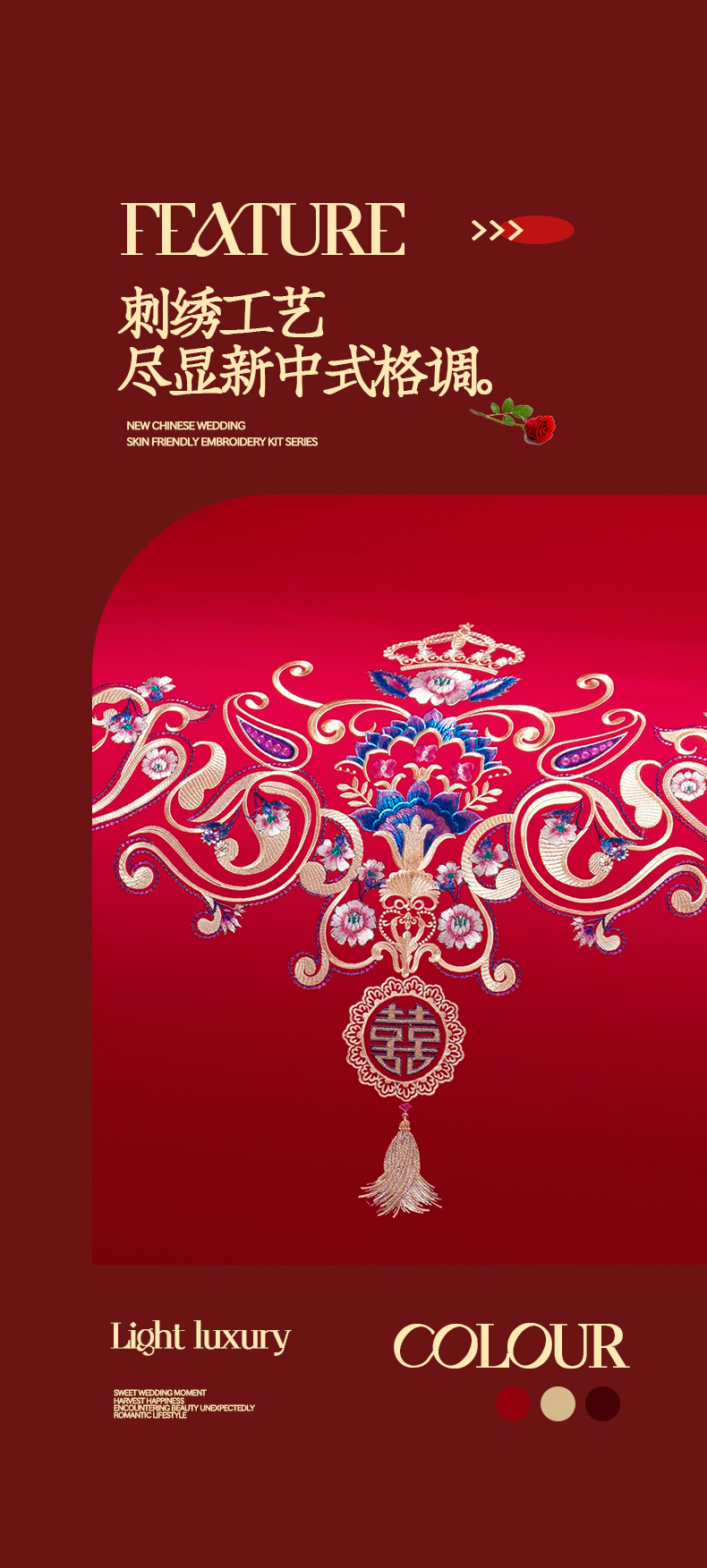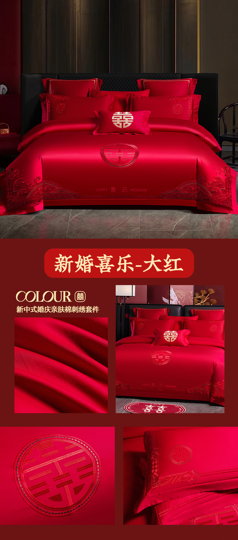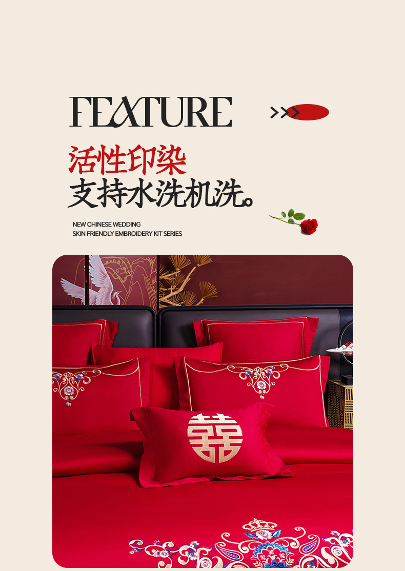 当前位置: 91家纺网 > 商品网购 > 床品套件 > 四件套 > 婚庆四件套 > 置顶家纺 2025新款新中式婚庆亲肤棉绣花四件套 良辰-大红