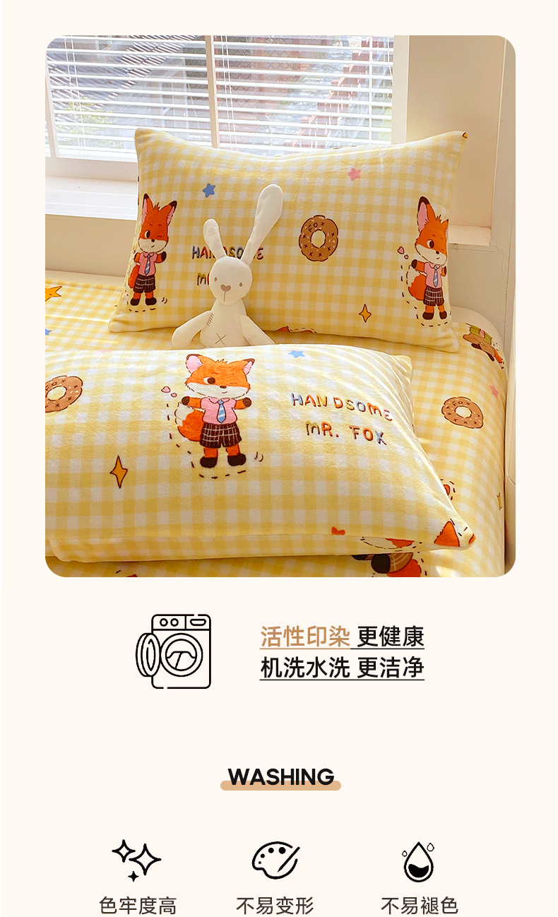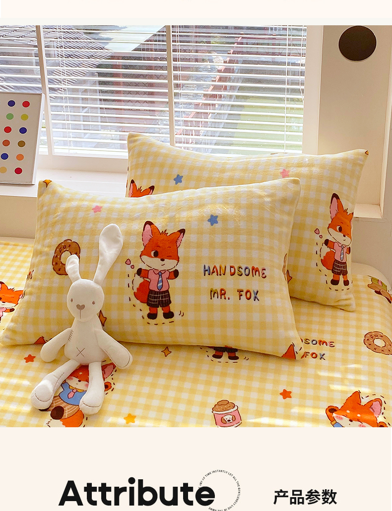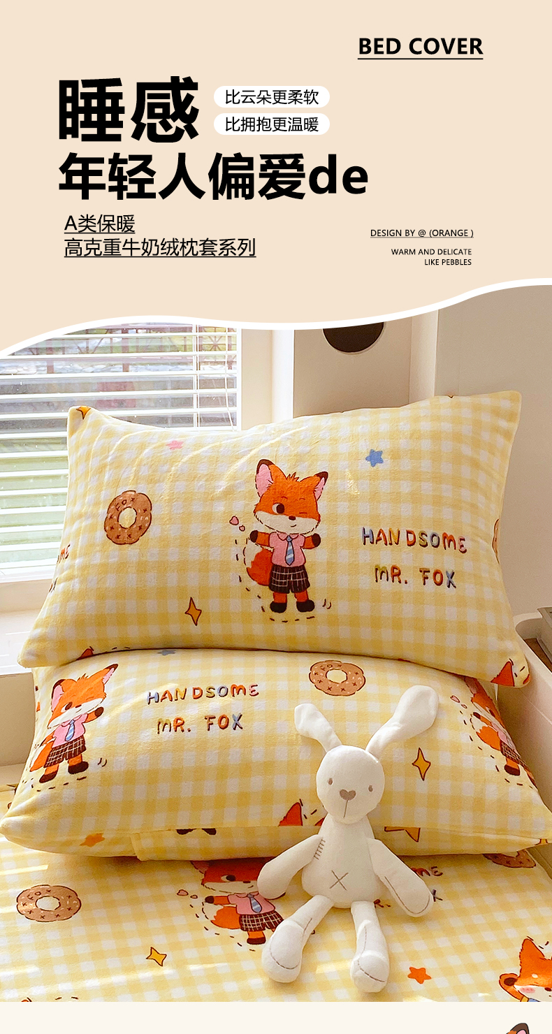 金鑫汇家纺 2025年加厚高克重A类牛奶绒单枕套 狐狸先生