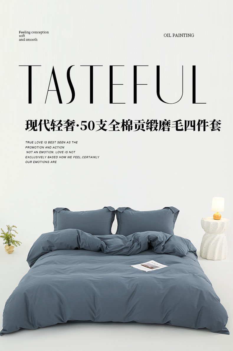 (总)红淳家纺 2025新款50支长绒棉贡缎磨毛单被套系列,南非蓝,高贵白,茜茜粉,雅灰,柚子金,云青,竹青,紫罗兰